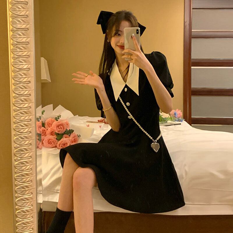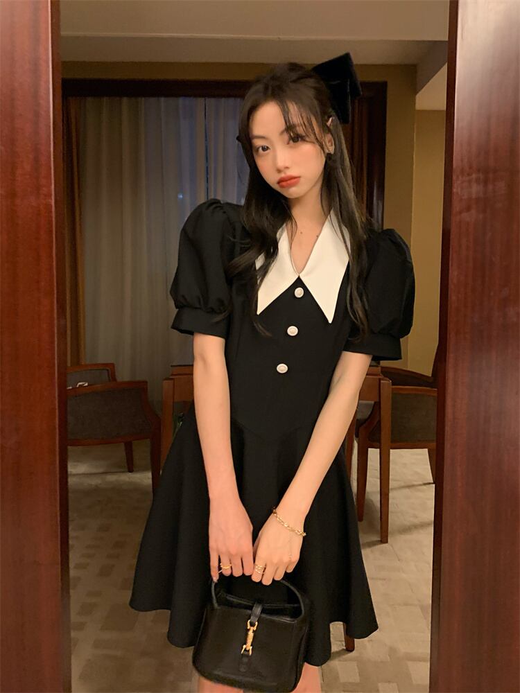 ブラックスリーブドレス サマースタイルスカート 大人ガーリー スウィート キュート カジュアル 夏物 s57615429060859
