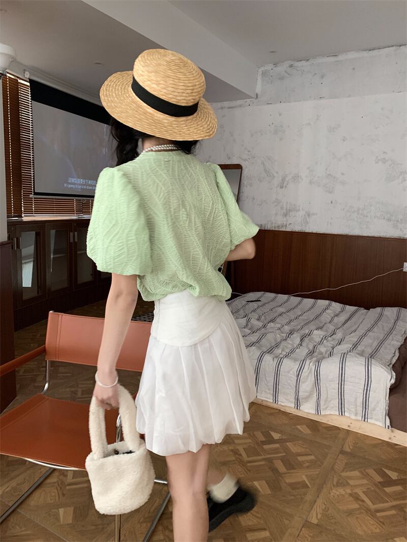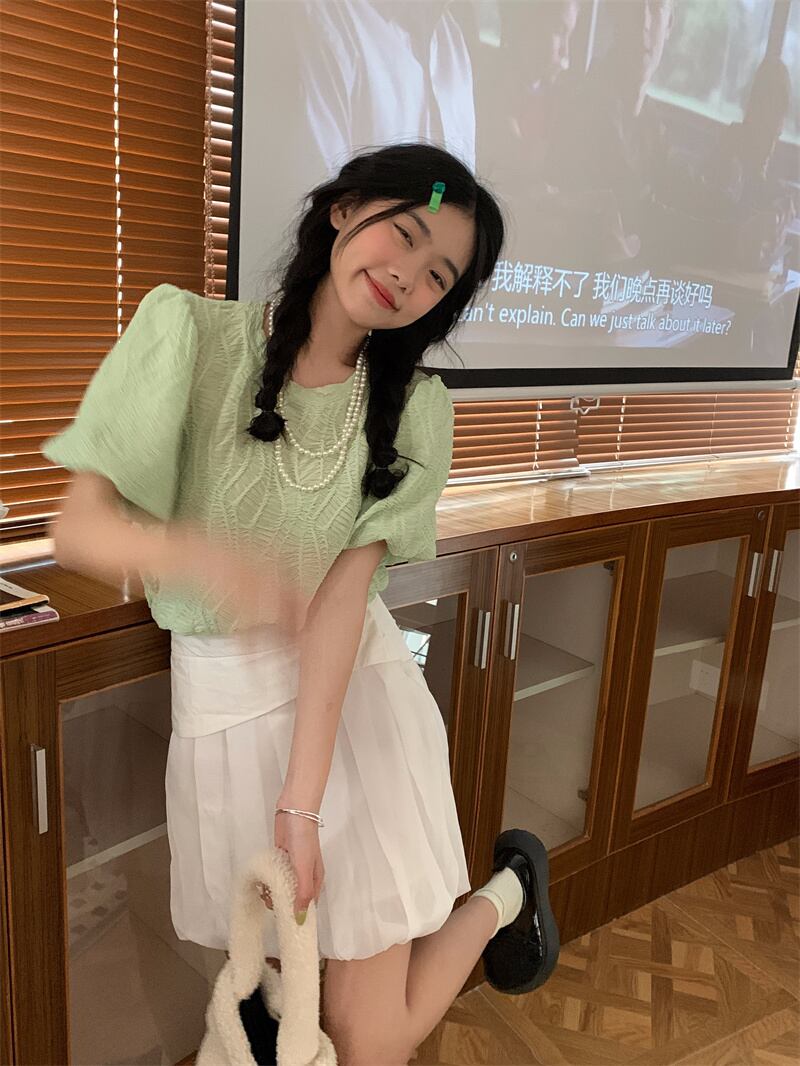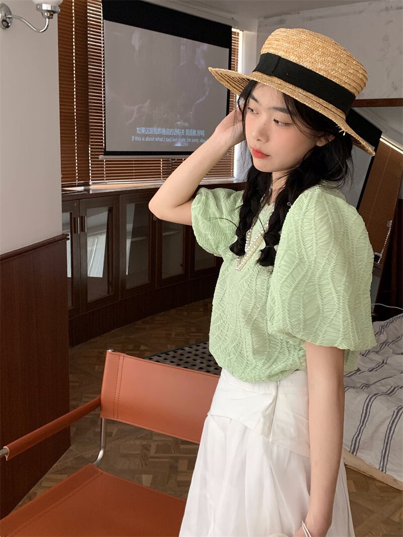 スリーブトップス サマーグリーンシャツ 大人ガーリー スウィート キュート カジュアル 夏物 ピュア s576130033955872