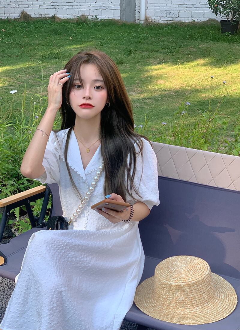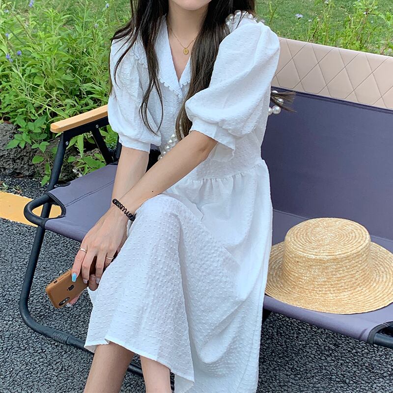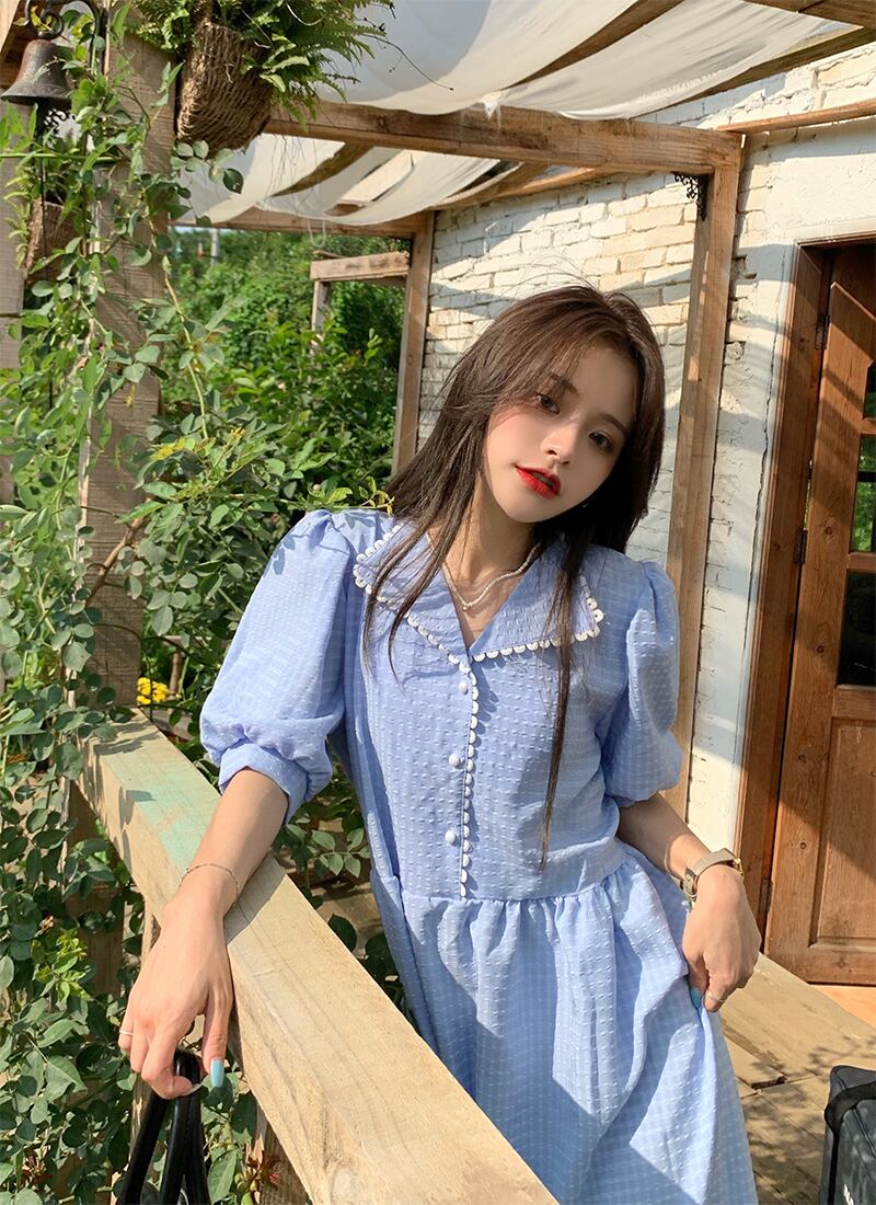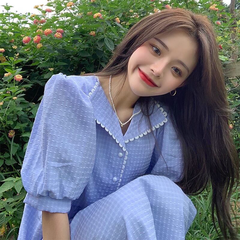 ブルースリーブドレス サマーロングスカート 大人ガーリー スウィート キュート カジュアル 夏物 s576164141425940