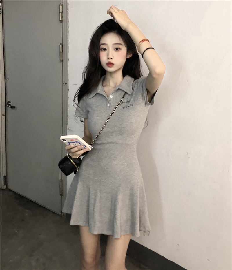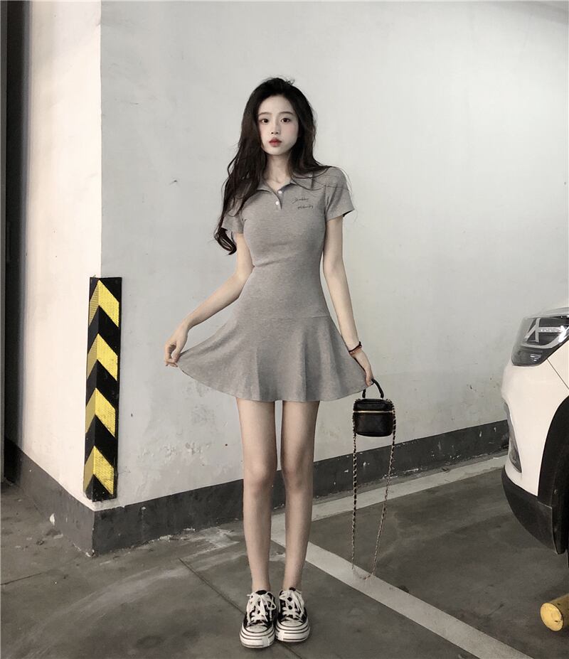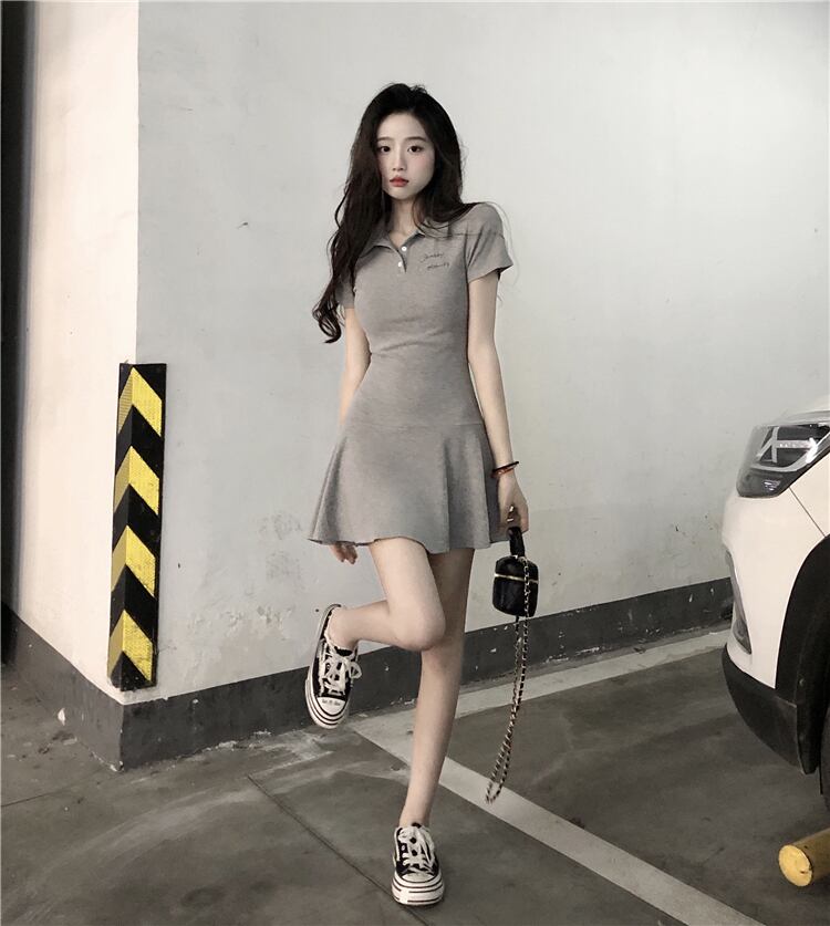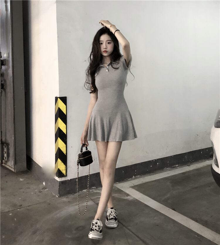 グレーTシャツ ドレス サマースリムショートスカート 大人ガーリー スウィート キュート カジュアル 夏物 ピュア s576137539109275