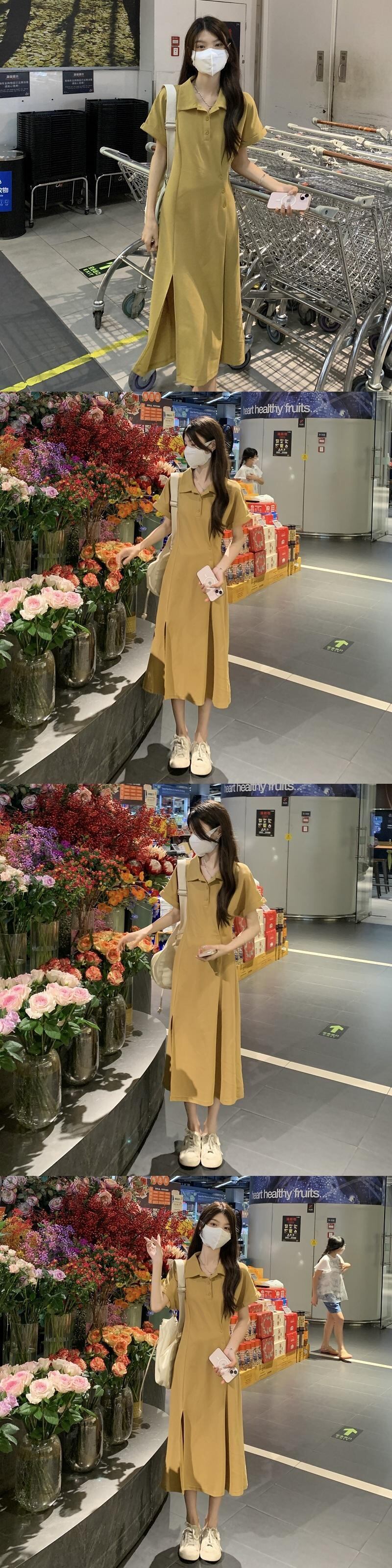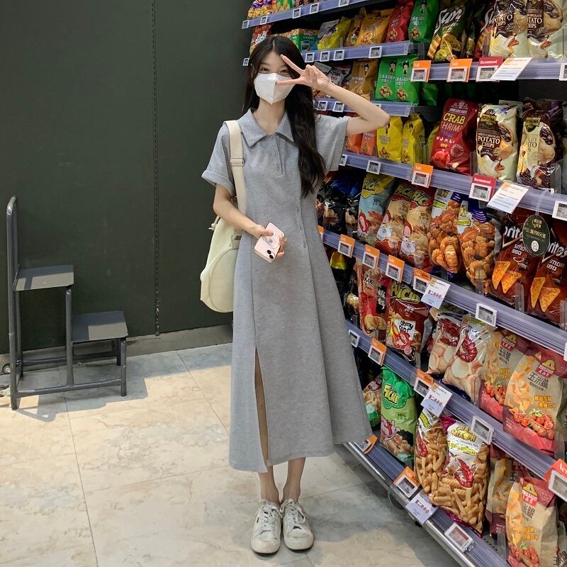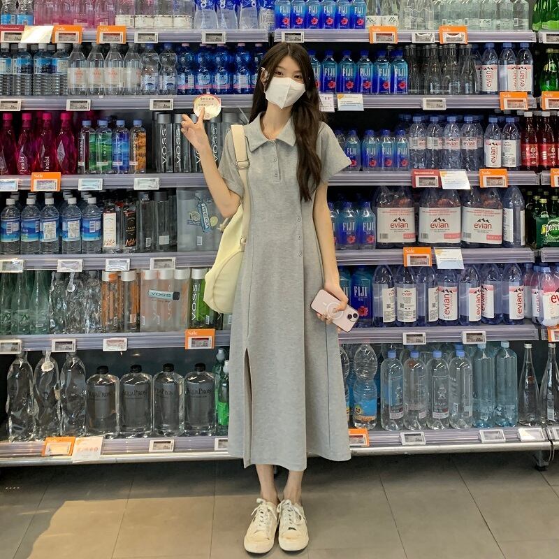 ドレス サマースリムロングスカート 夏物 Oネック s576112443492331