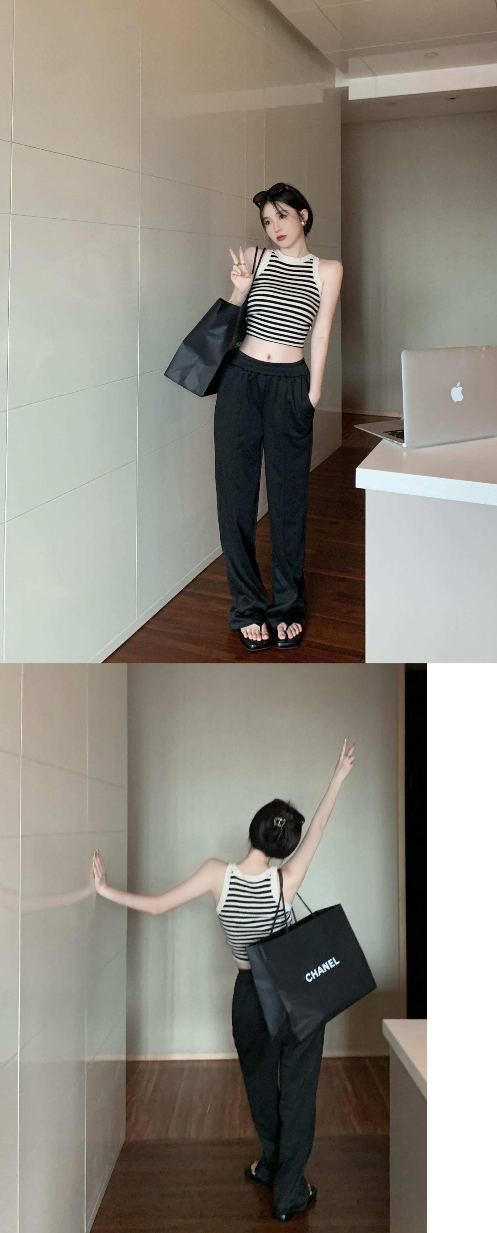 ストライプニットベーシックサマーノースリーブショートトップス レッド 大人ガーリー スウィート キュート カジュアル 夏物 s576197844331426
