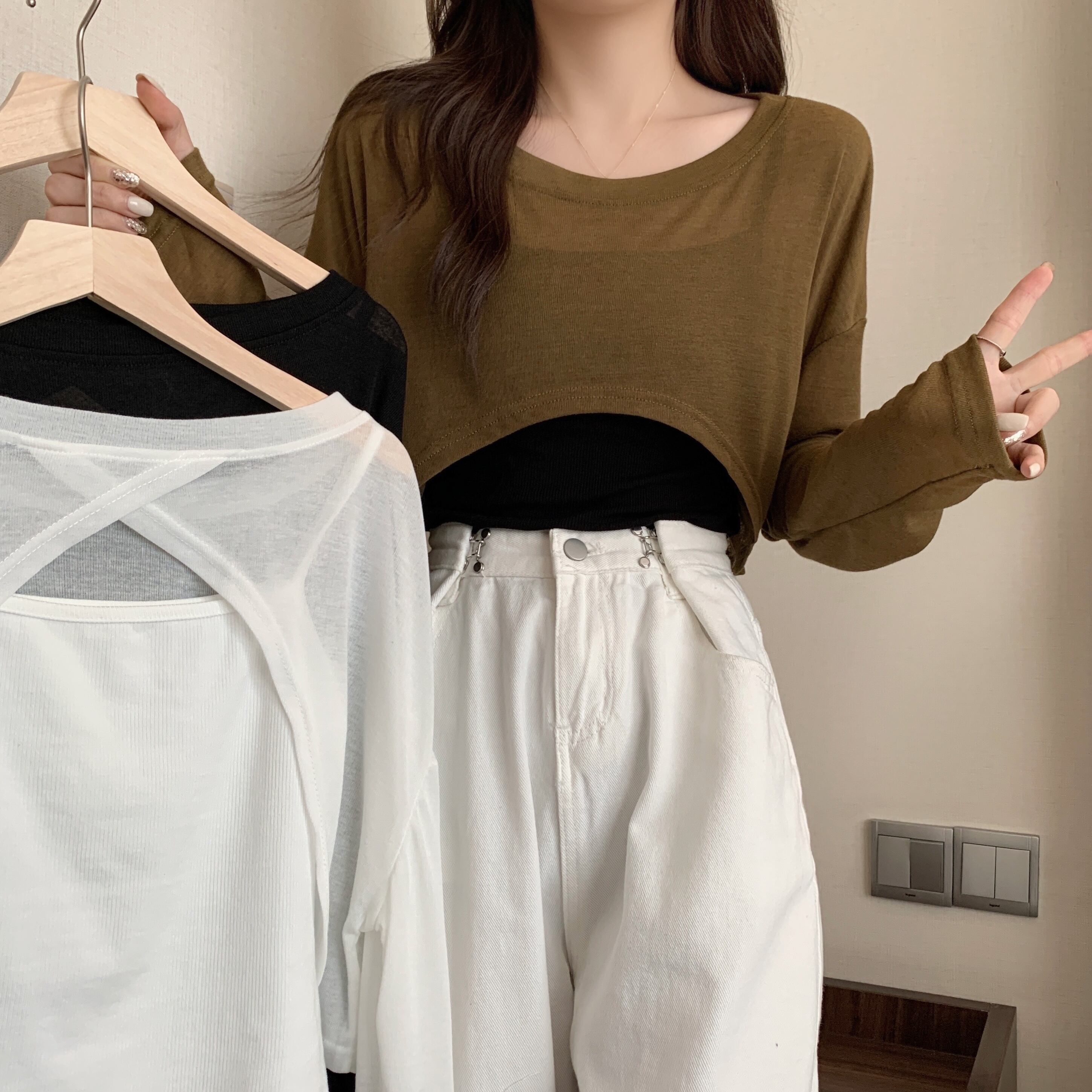 Tシャツ サマー薄手ブラウス ショートトップス ロング 夏物 s576181448240802
