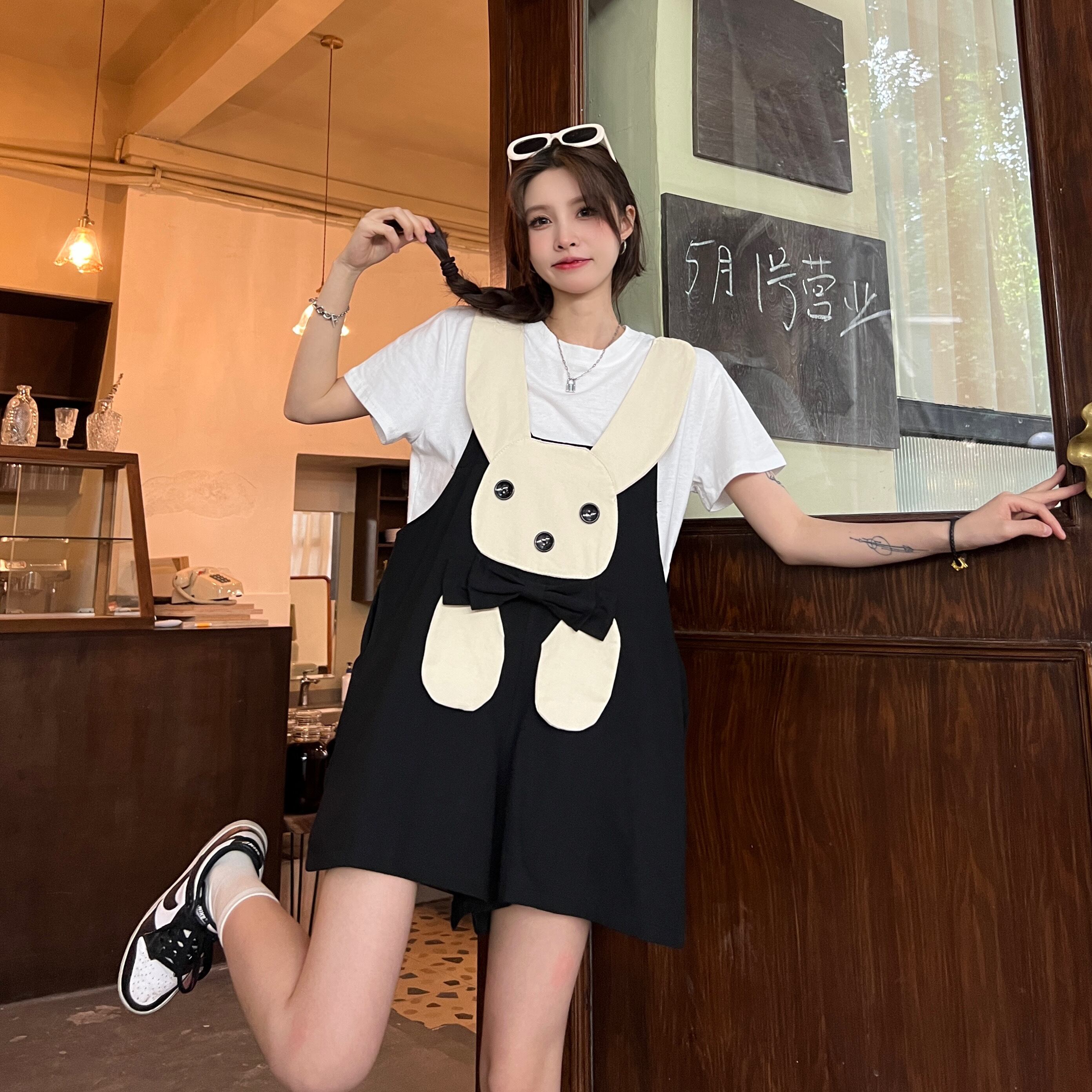 色:ホワイトt-shirt,ブラックoveralls,dragonfruitoveralls
