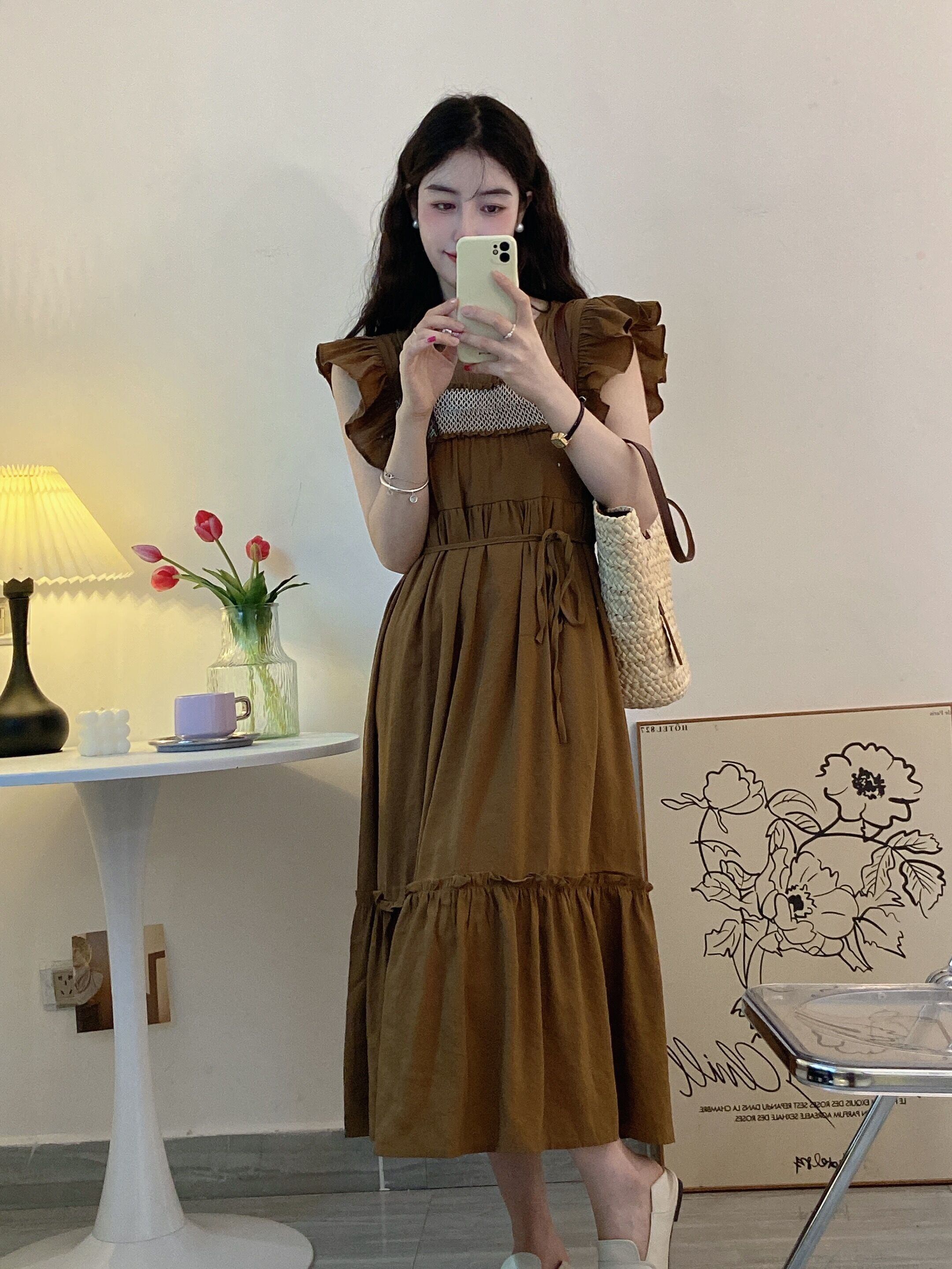 スリーブドレス サマースタンダードロングスカート レトロ 夏物 s576153457639993