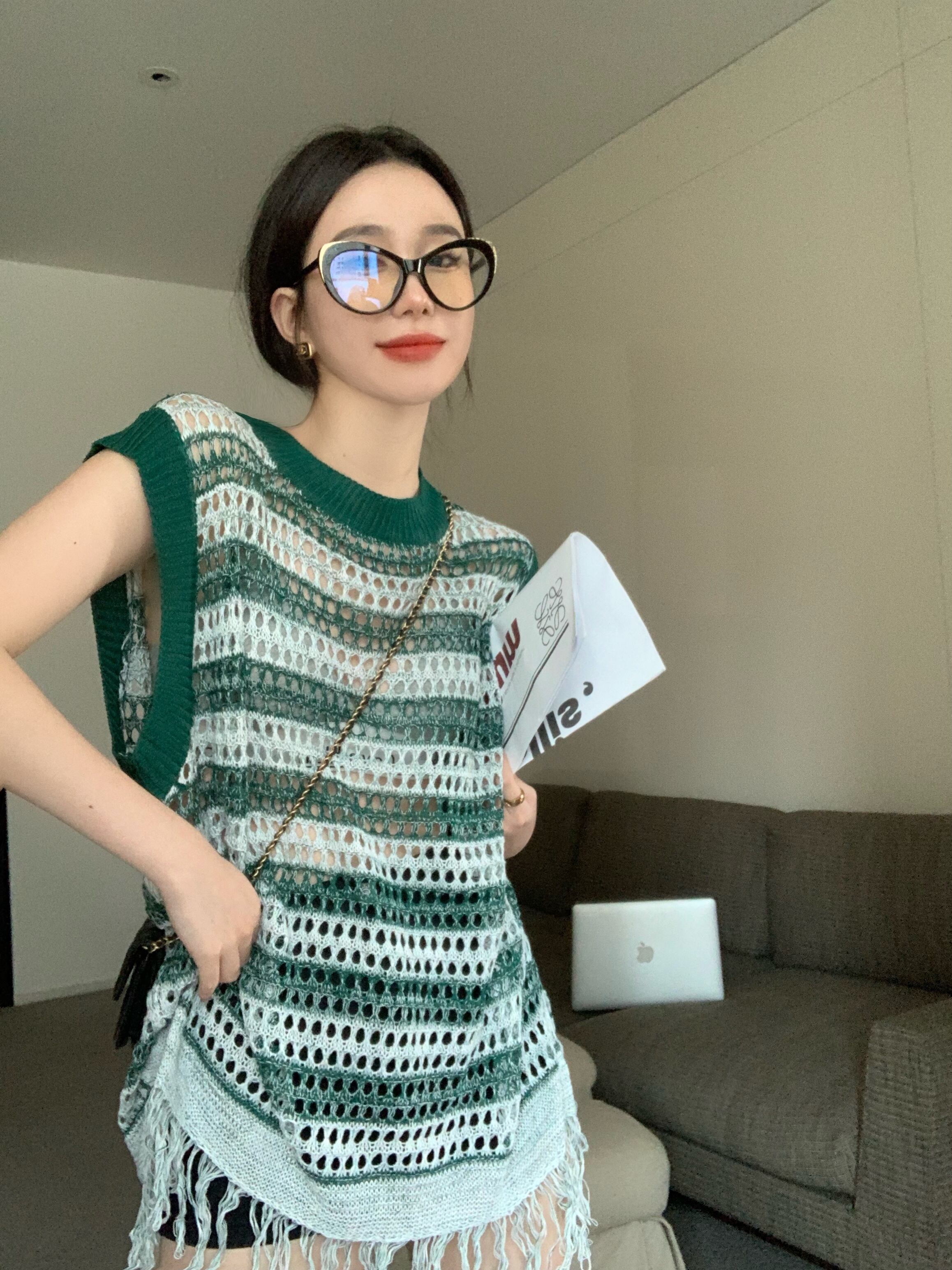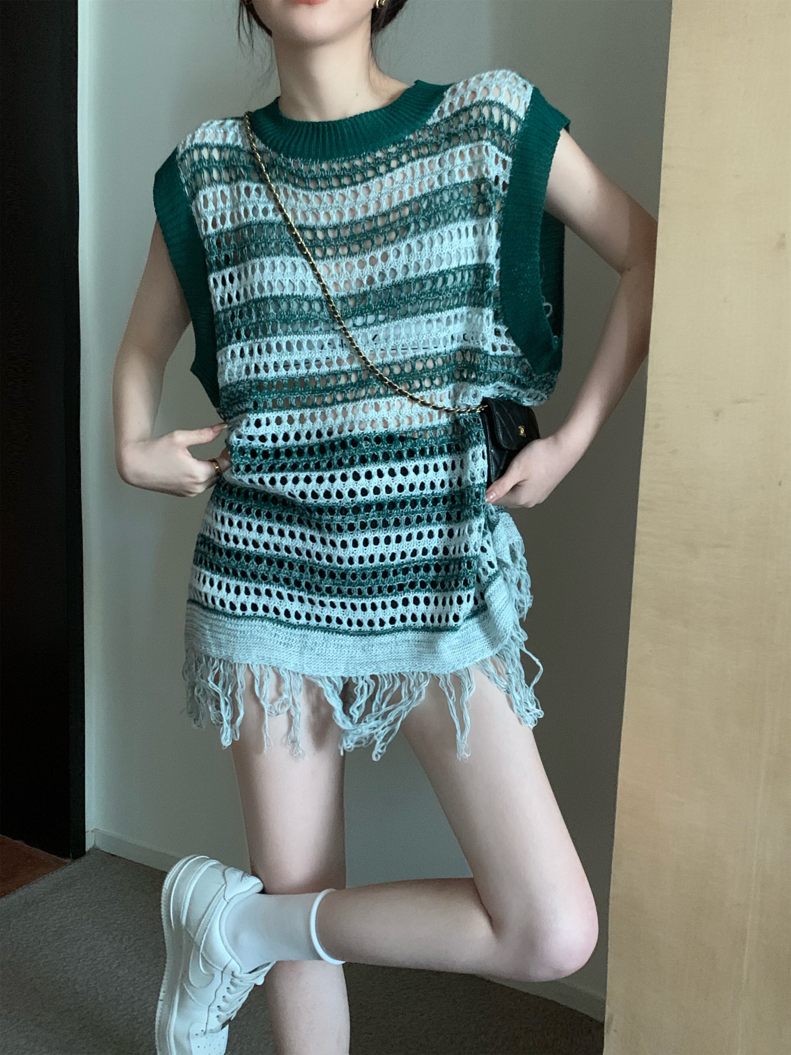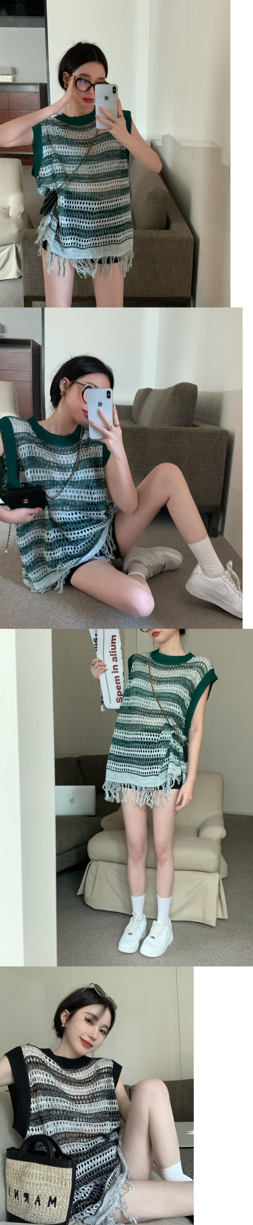 ストライプノースリーブニット サマー薄手ブラウス スタンダードルーズトップス レトロ 夏物 s57616652054878