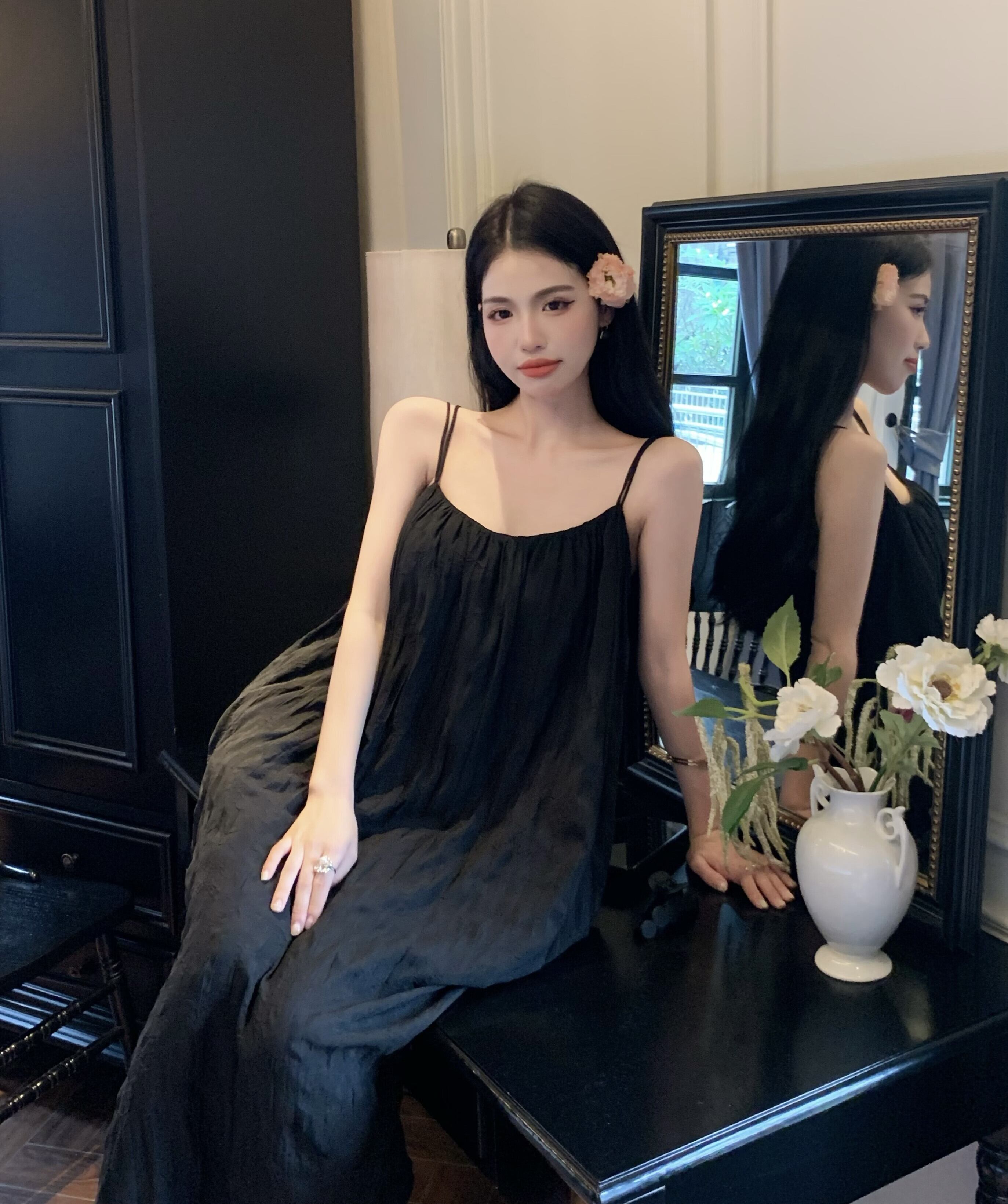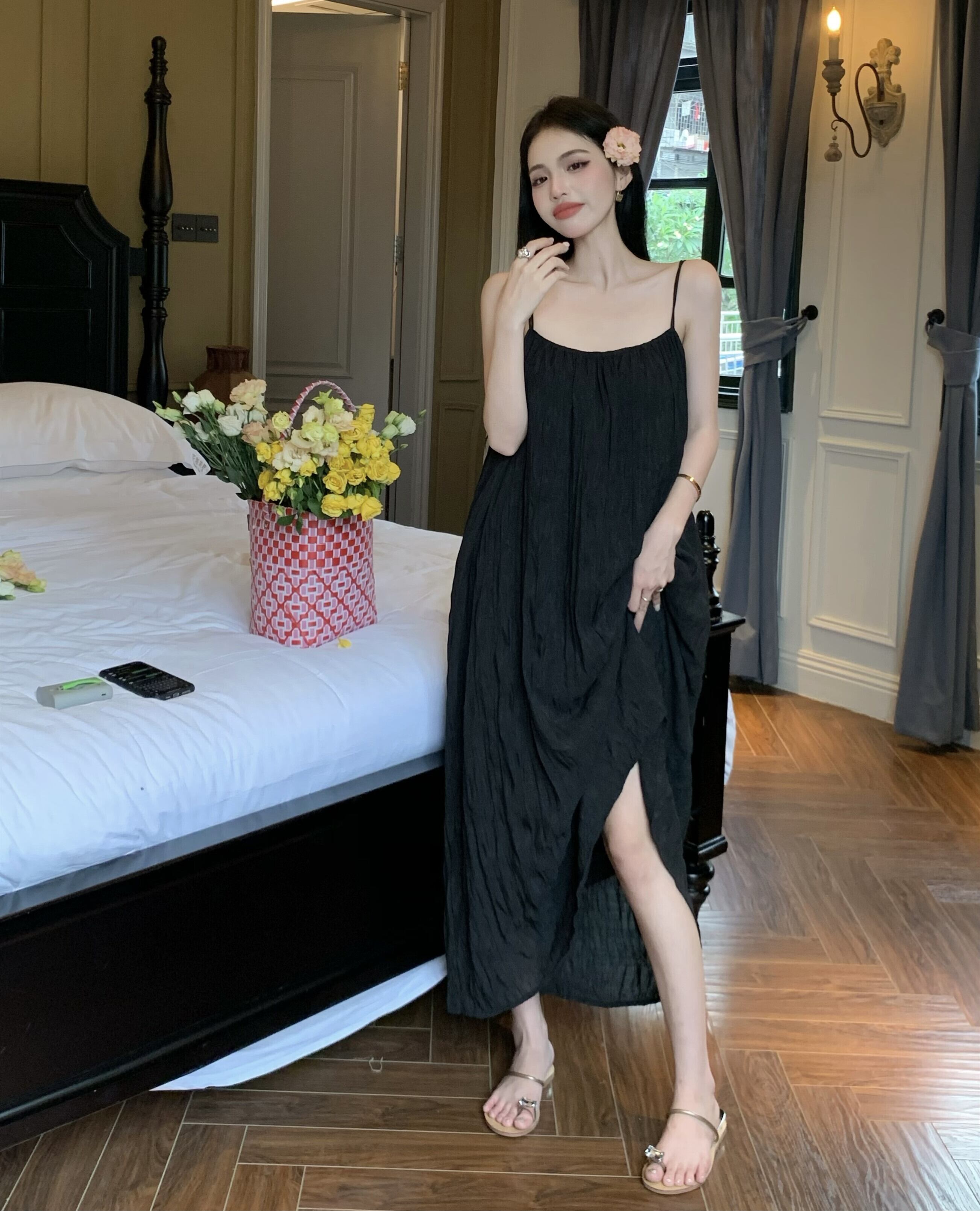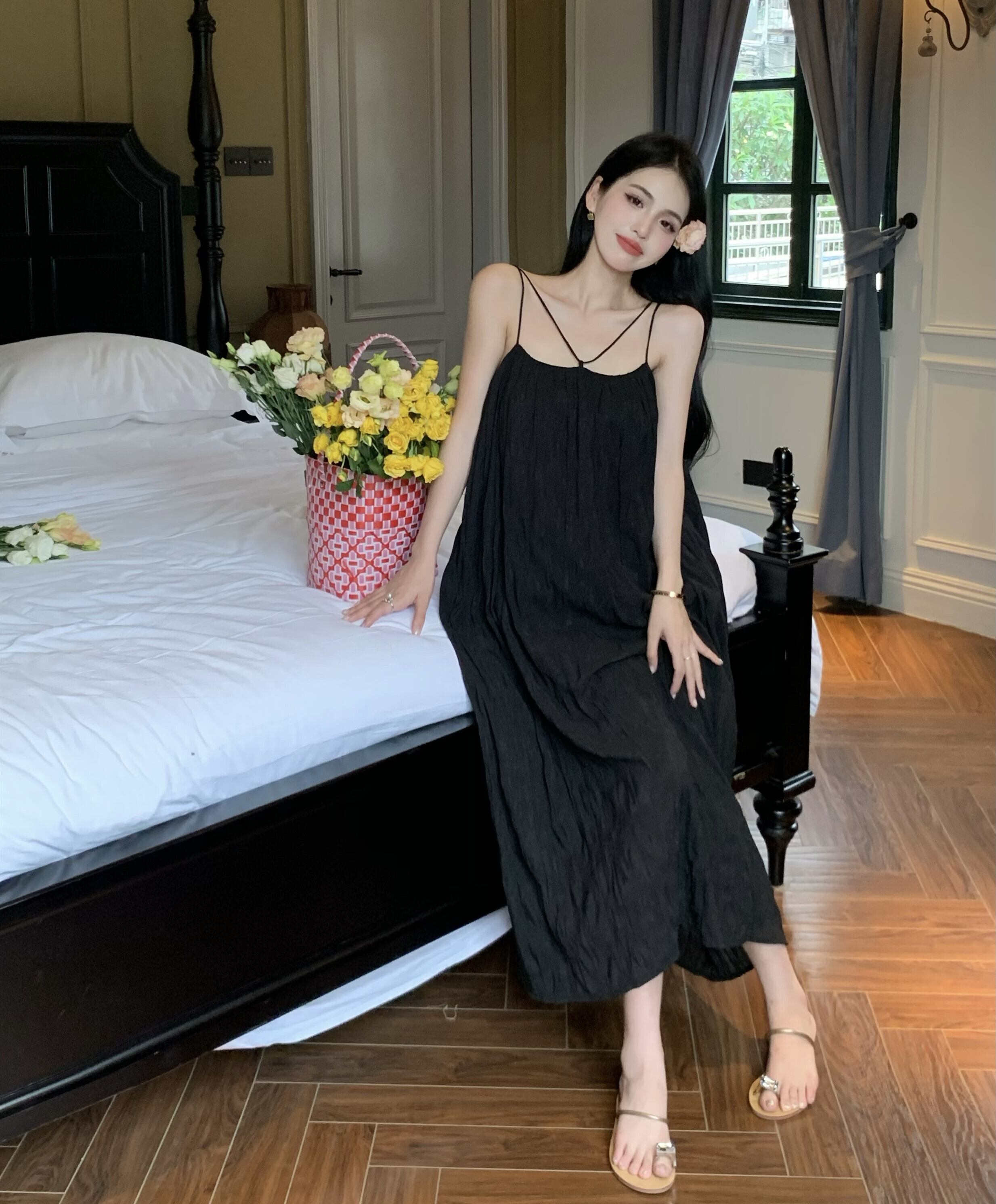 ブラックドレス サマーロングスカート 大人ガーリー スウィート キュート カジュアル 夏物 s57611349571235