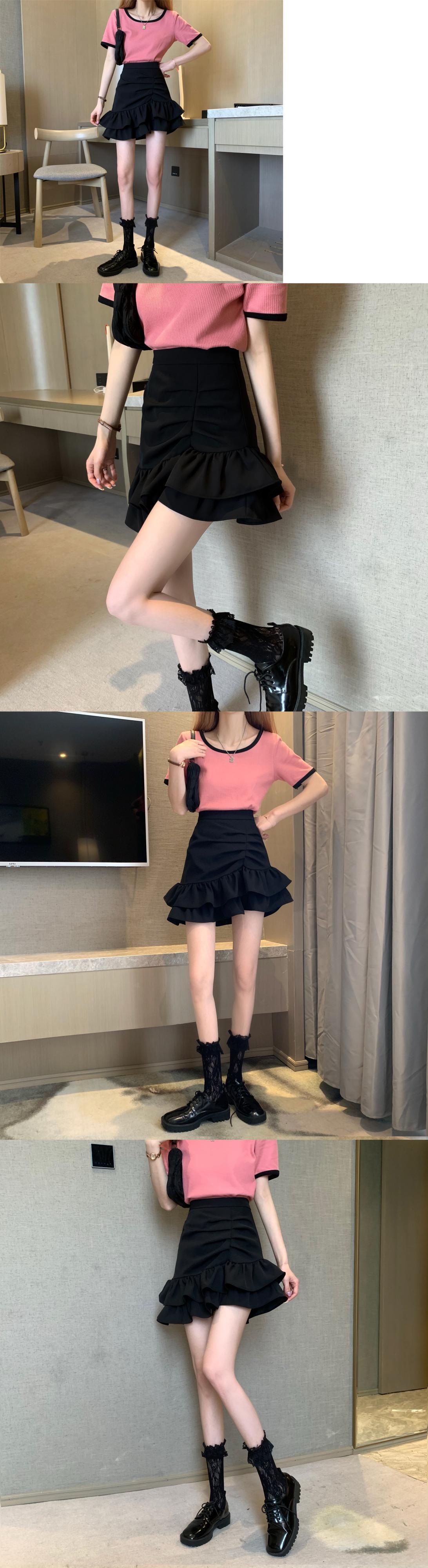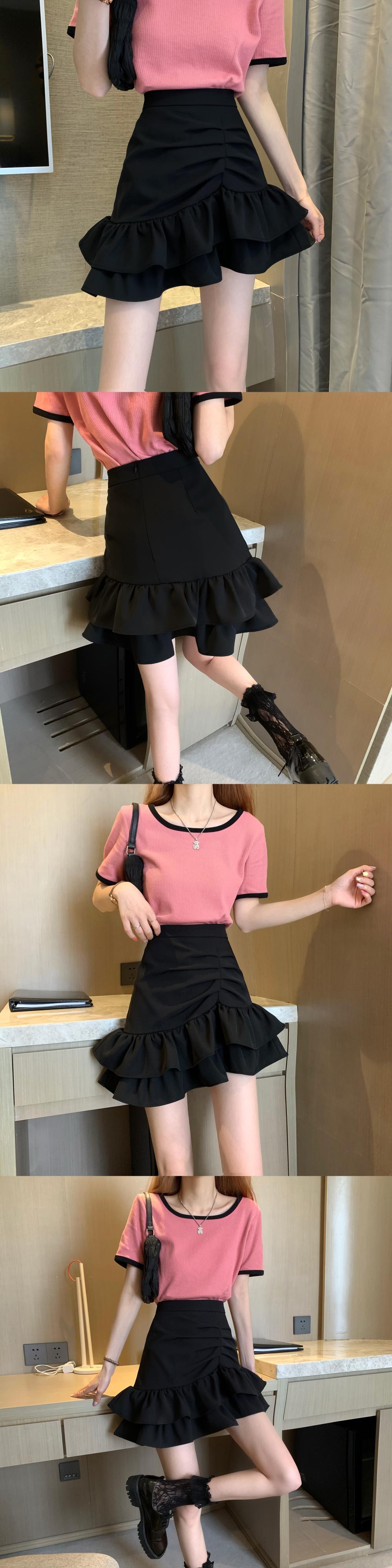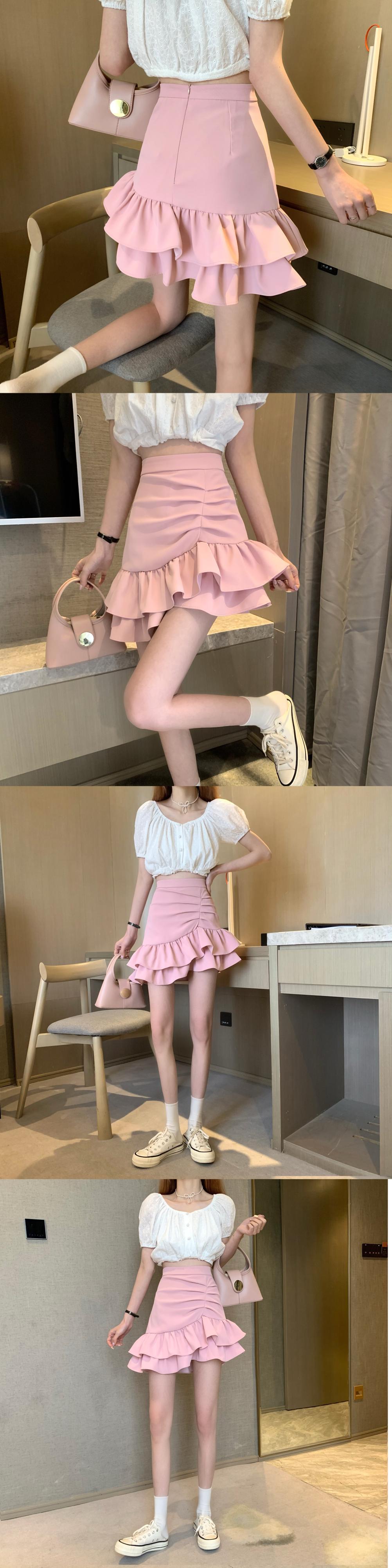 スカート サマーハイウェストウェスト薄手ショート ピンク 夏物 s576174435324410