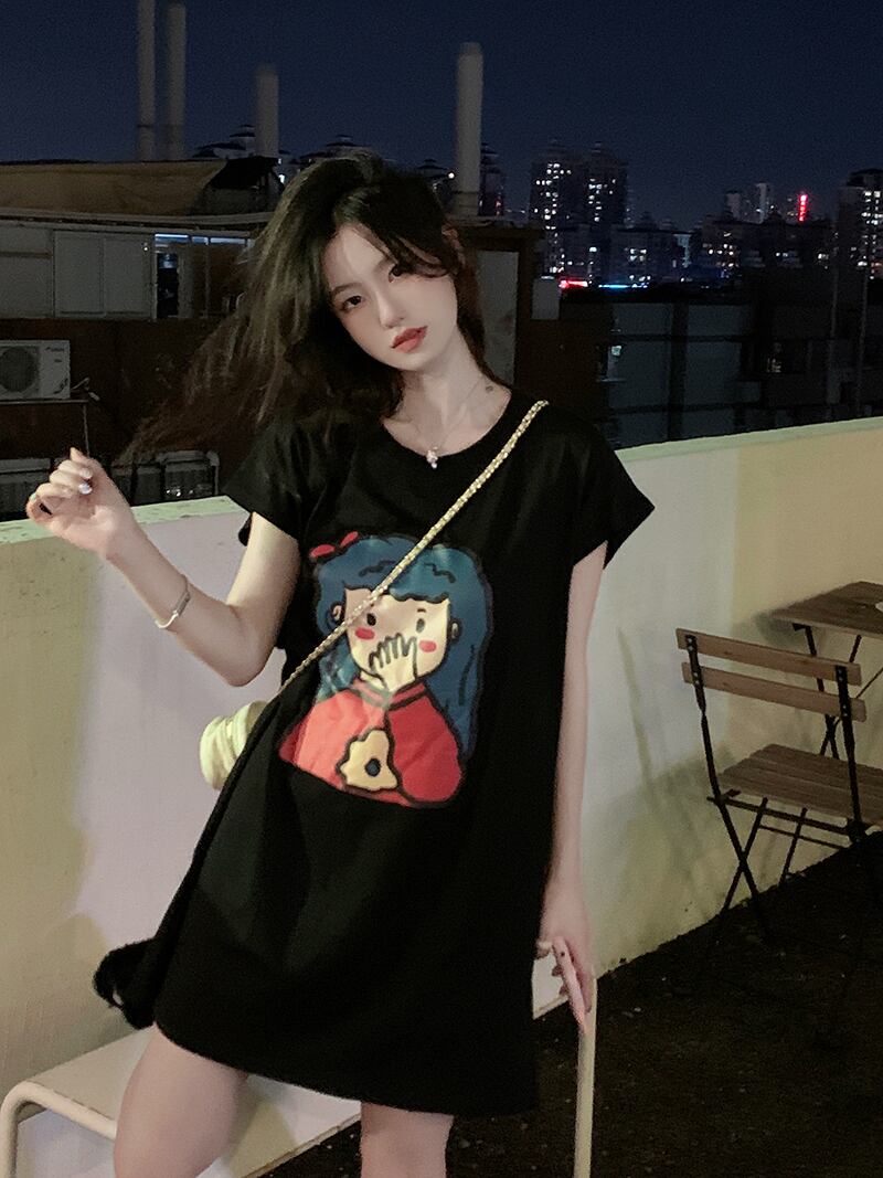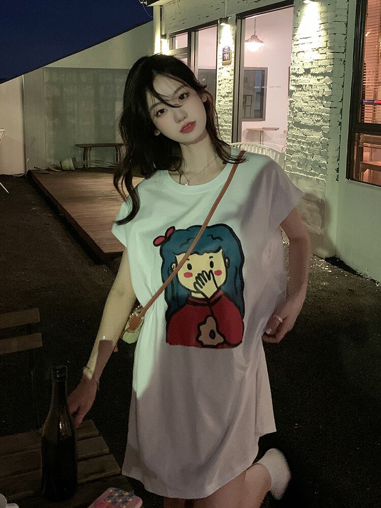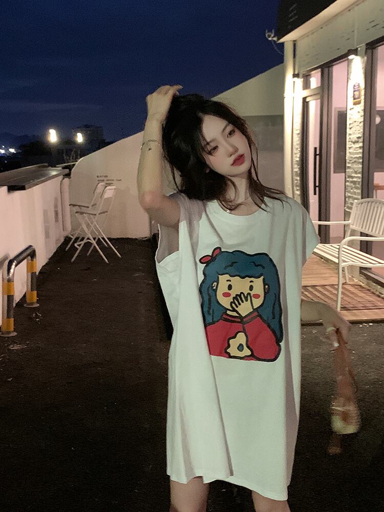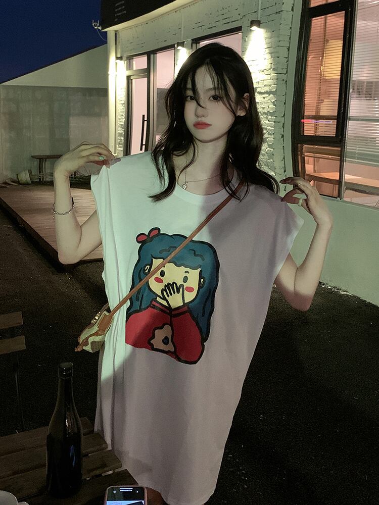 ホワイトノースリーブTシャツ ドレス サマールーズカジュアルスリムスカート コットン 夏物 s576199794065281