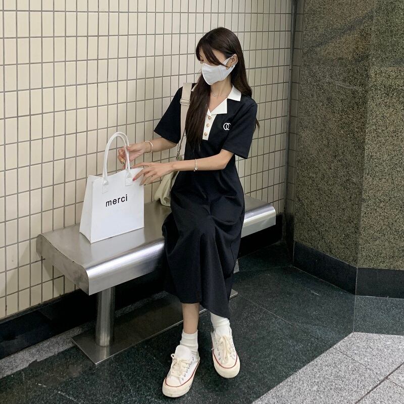 カラーTシャツ ドレス サマースタイルカジュアル薄手ロングスカート 夏物 s576199118552177