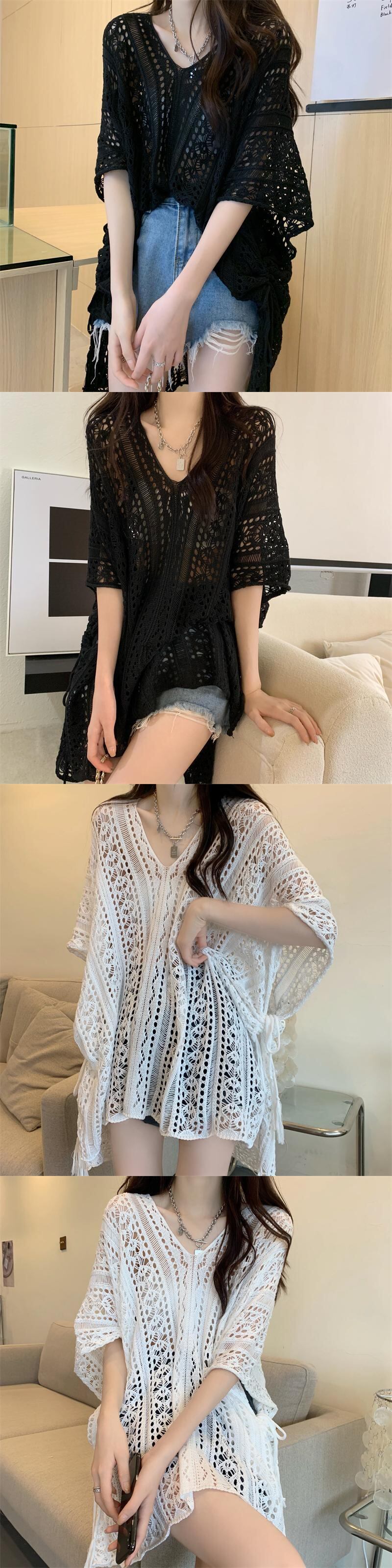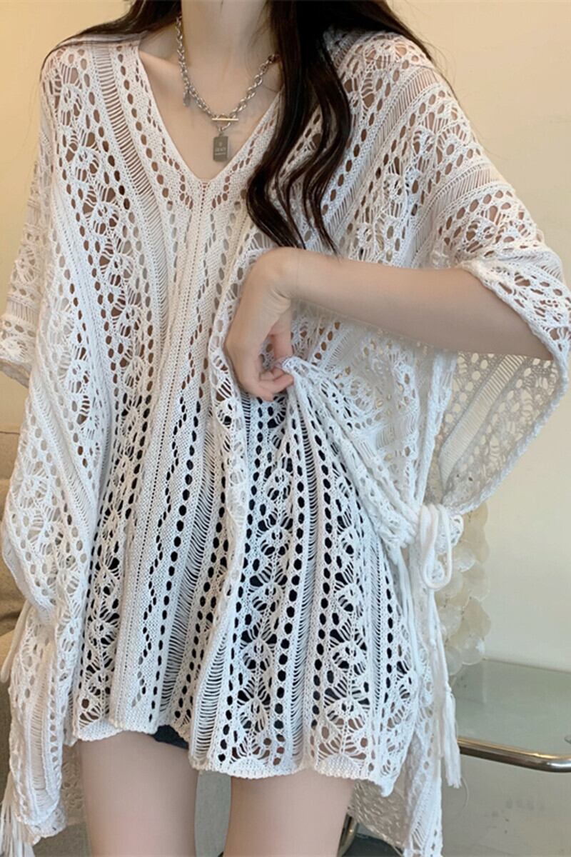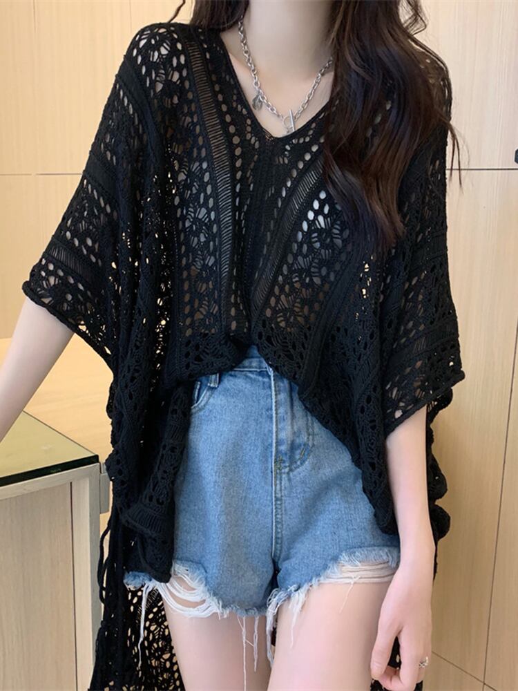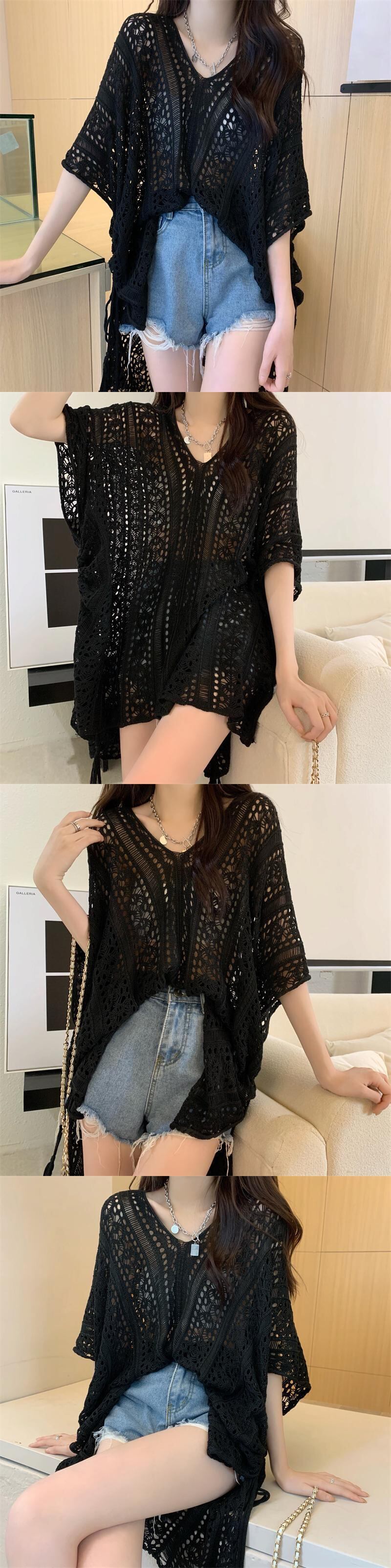 ホワイトニットセーター サマー薄手ブラウス トップス 夏物 s576168789410553