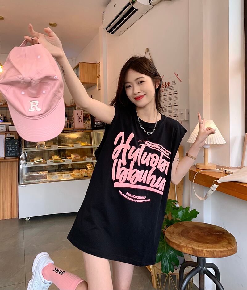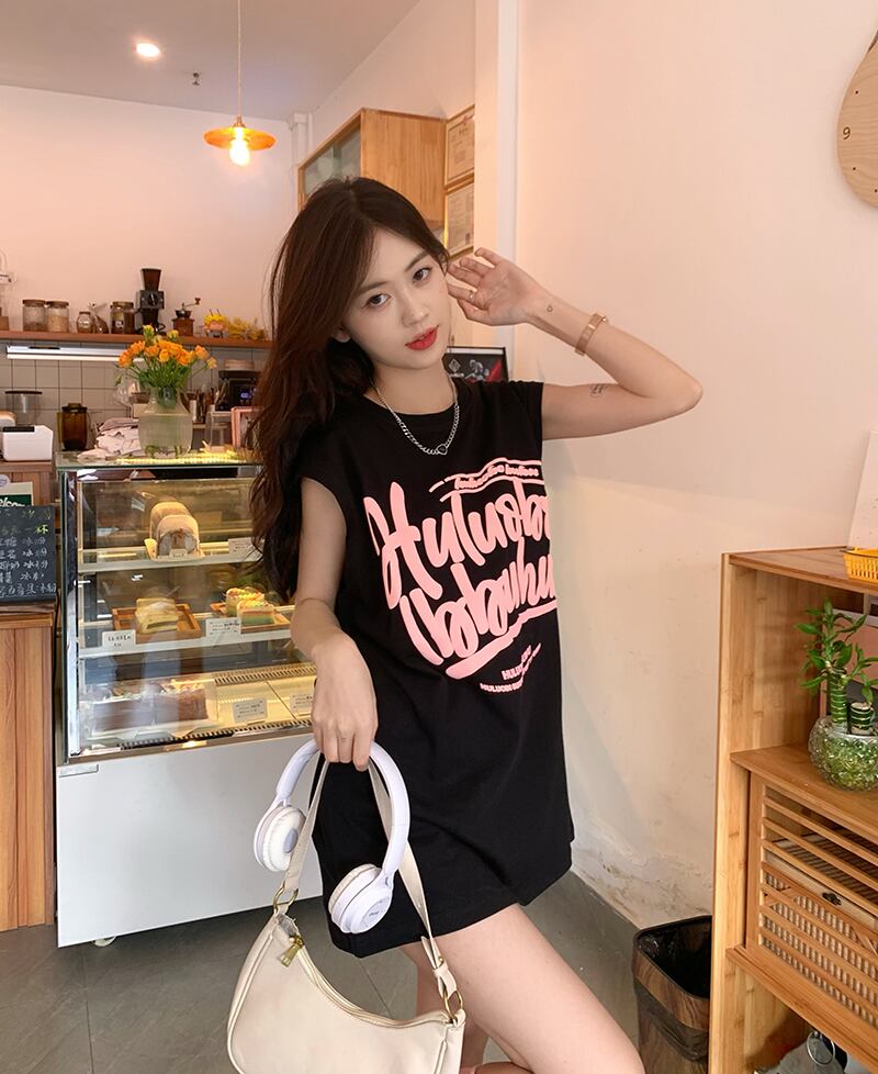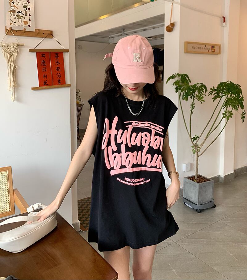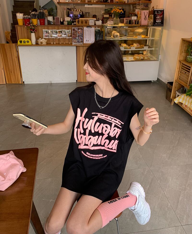 ブラックノースリーブTシャツ サマールーズカジュアルレッドトップス 夏物 s57619312896024