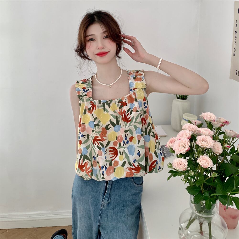 フローラルサマーノースリーブトップス 大人ガーリー スウィート キュート カジュアル 夏物 花柄 s576112187210182