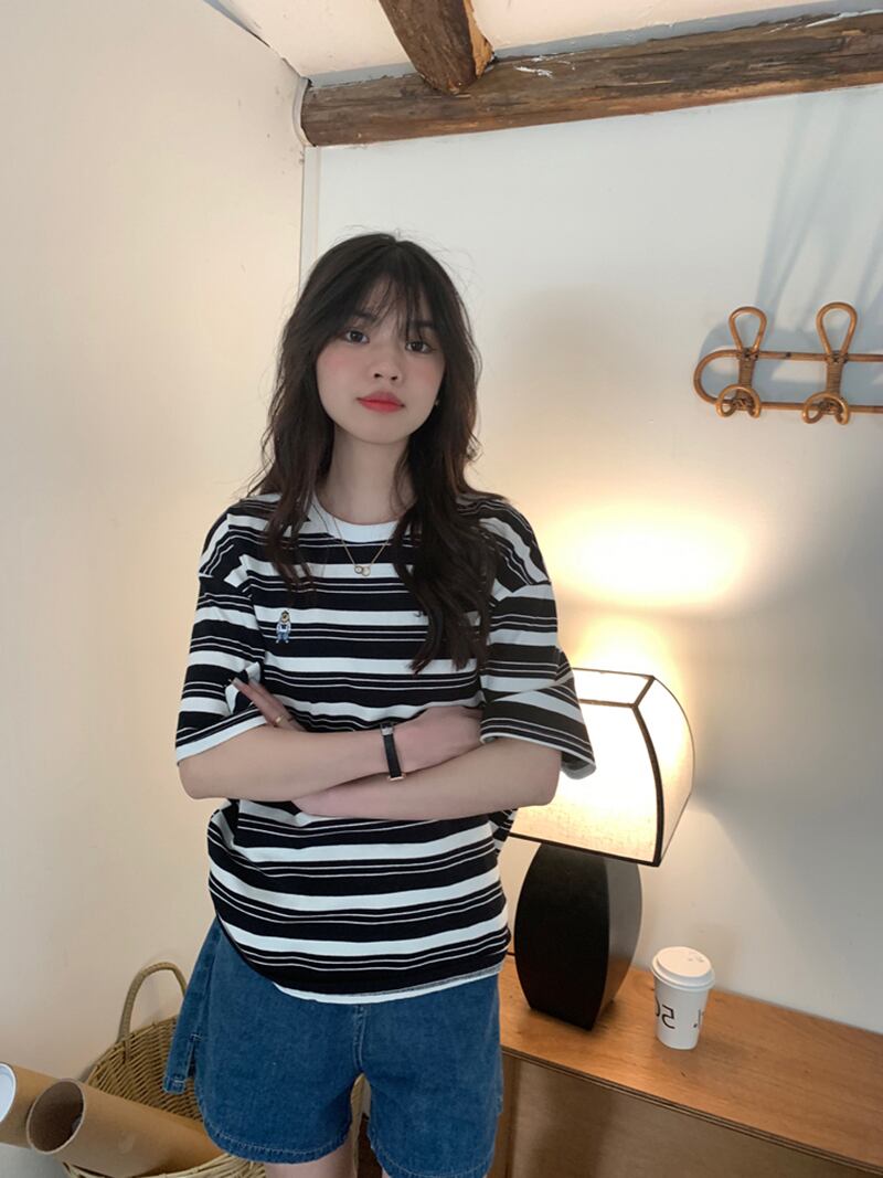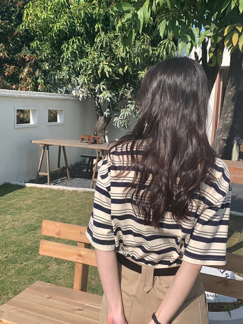 ストライプTシャツ サマースタンダードルーズトップス レトロ 夏物 s576114877441187