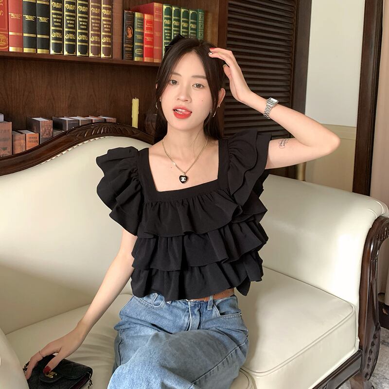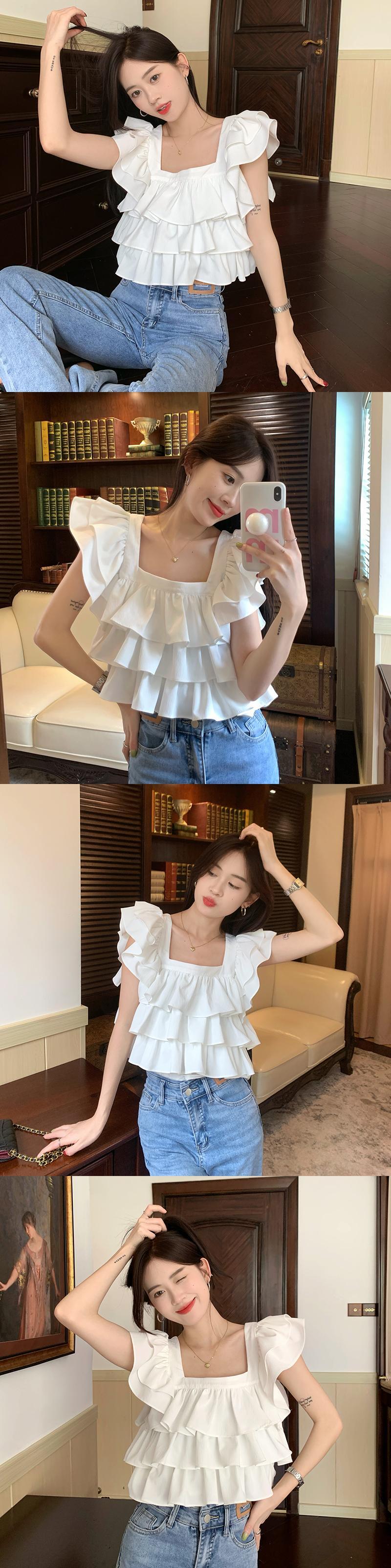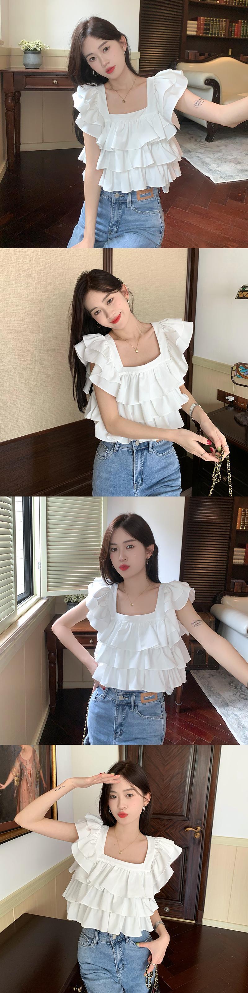 カラーショートトップス サマーホワイトシャツ 大人ガーリー スウィート キュート カジュアル 夏物 スクウェア s576194377746166