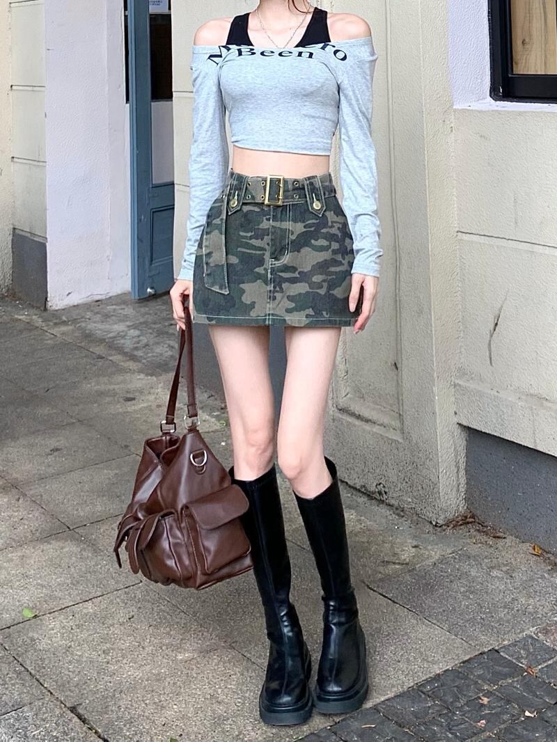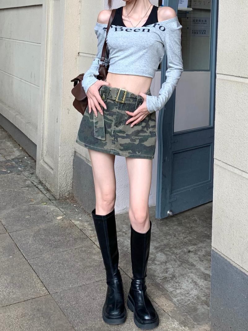 スタイル迷彩柄スカート サマーAラインハイウェストウェストショート 大人ガーリー スウィート キュート カジュアル 夏物 s576167780765904