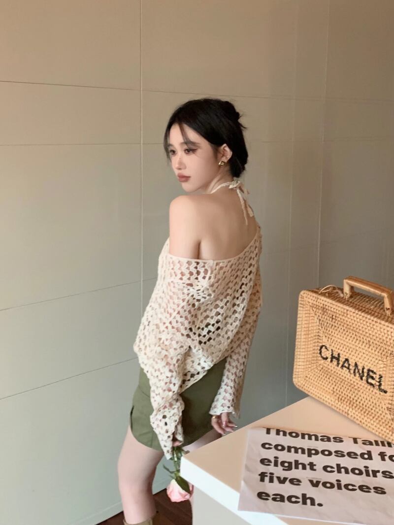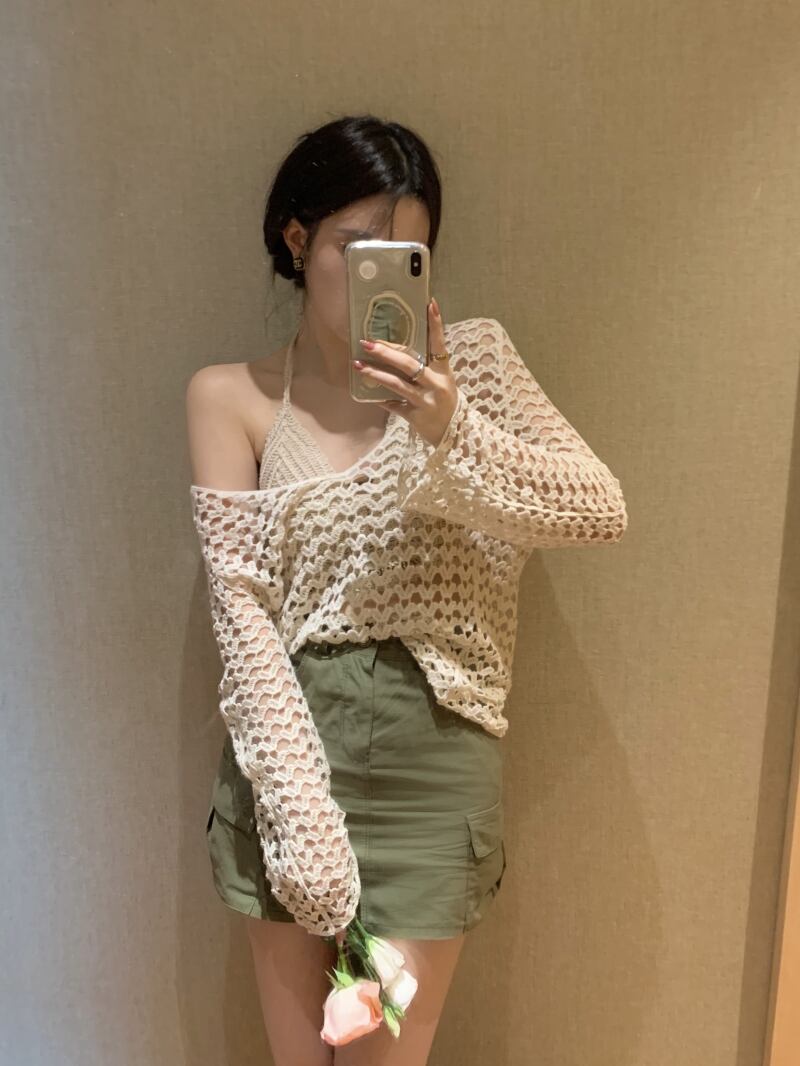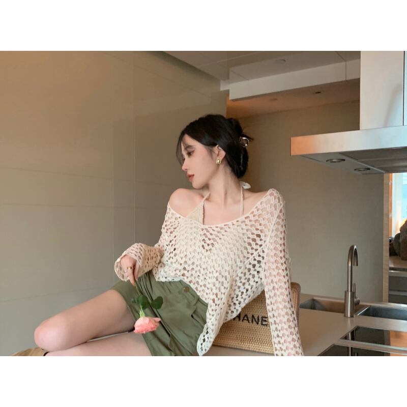 長袖スリーブニット サマーシャツルーズ薄手Vネックプルオーバー トップス ロング 夏物 s576140789770446