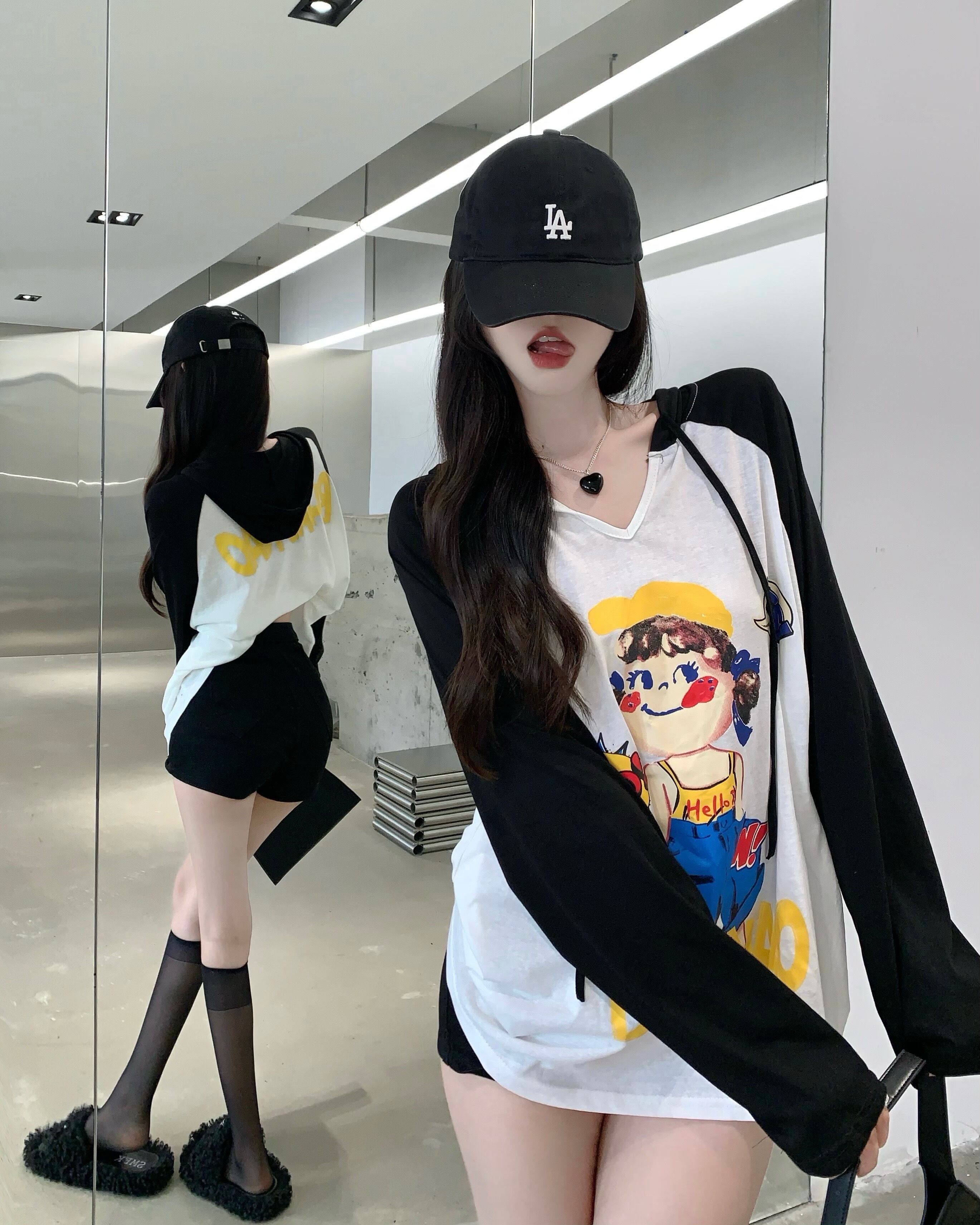 フードTシャツ サマー薄手ルーズトップス ロング 夏物 s576195083221805