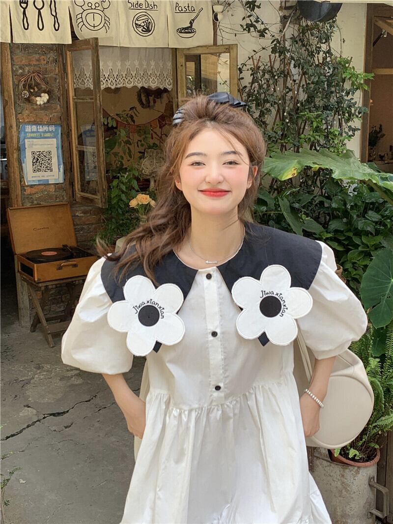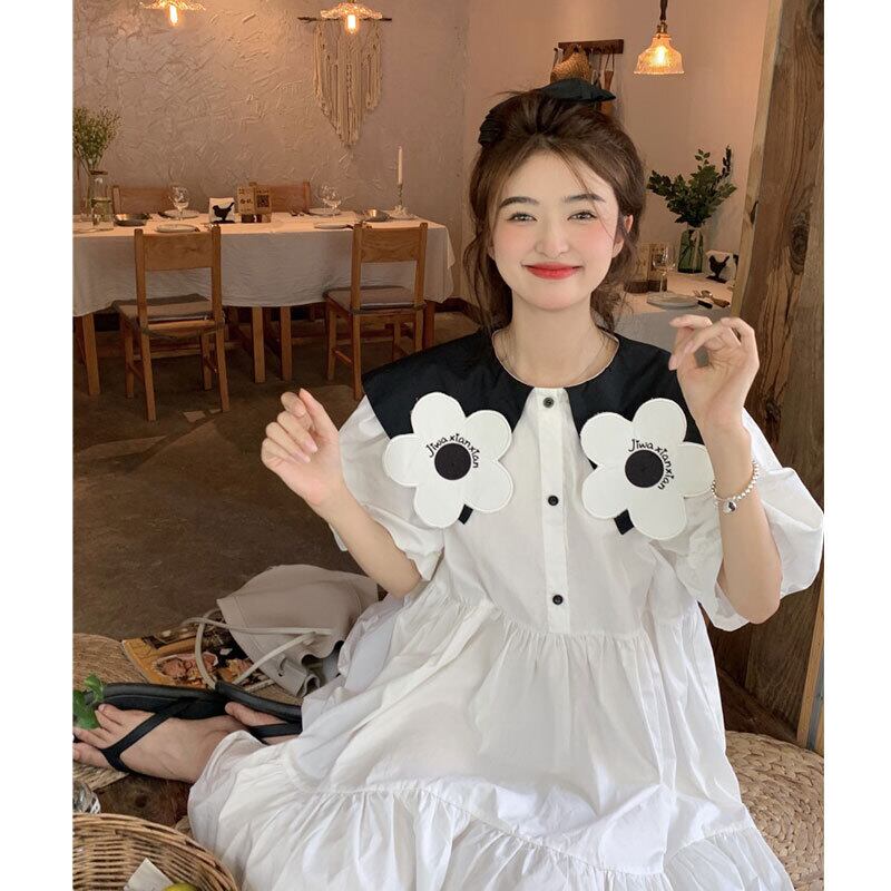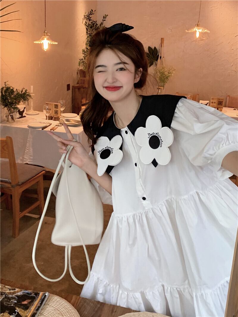 ホワイトスリーブドレス サマースタイルカラースカート 大人ガーリー スウィート キュート カジュアル 夏物 s576131059737377