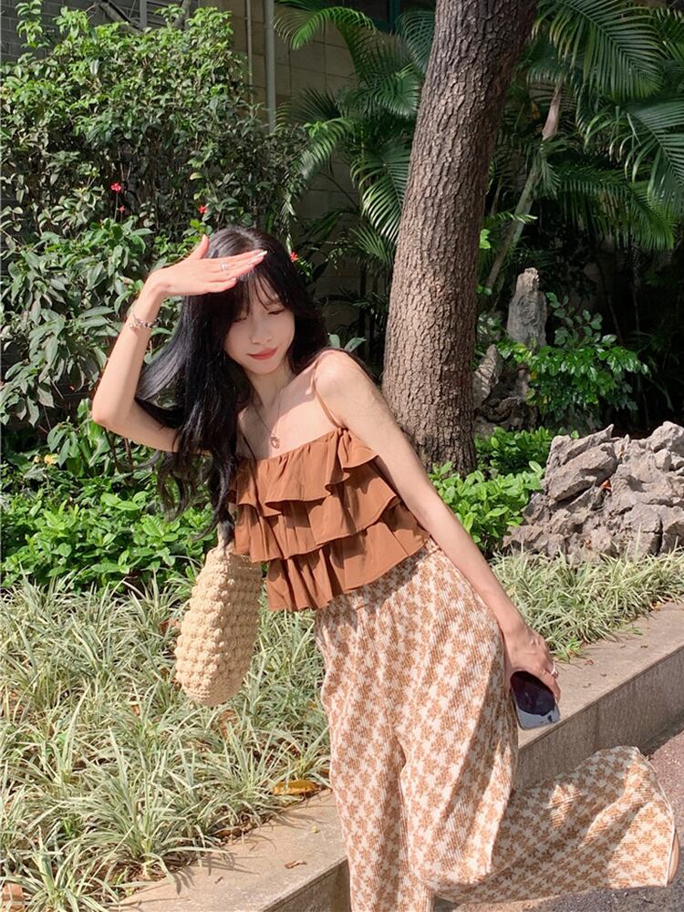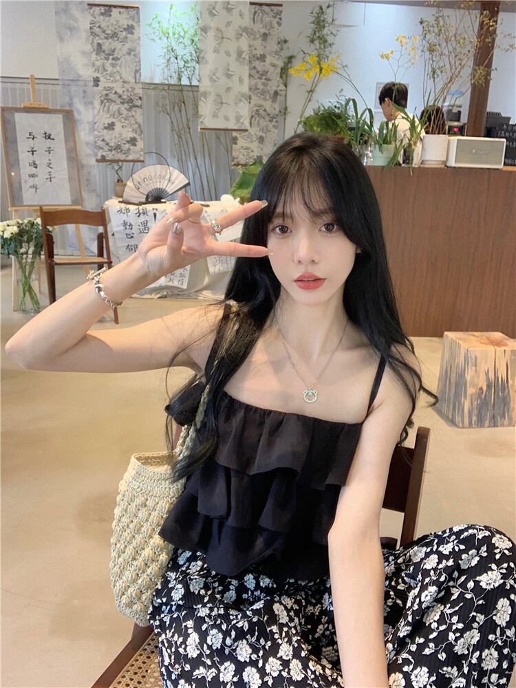 ブラックサマートップス アウターノースリーブショート 大人ガーリー スウィート キュート カジュアル 夏物 s576114895562136
