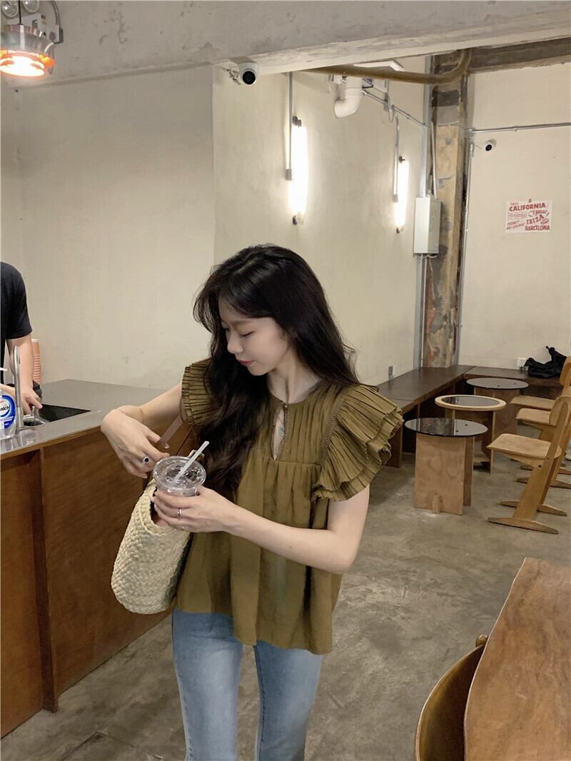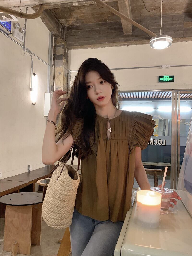 スタンダードトップス サマースリーブシャツ レトロ 夏物 s576170468606799