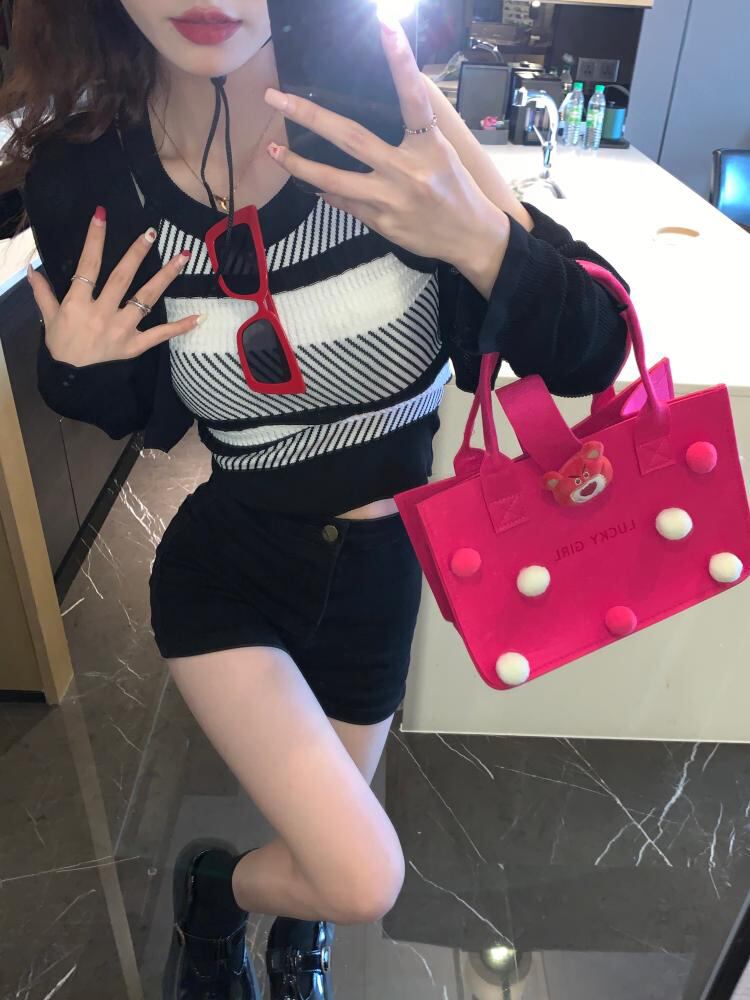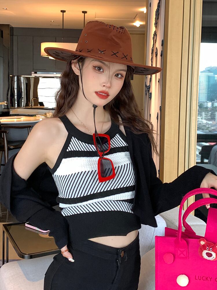 色:ストライプdvestsinglepiece,ブラックcardigansinglepiece