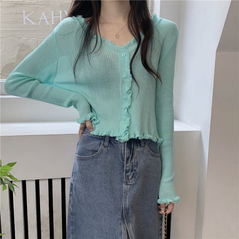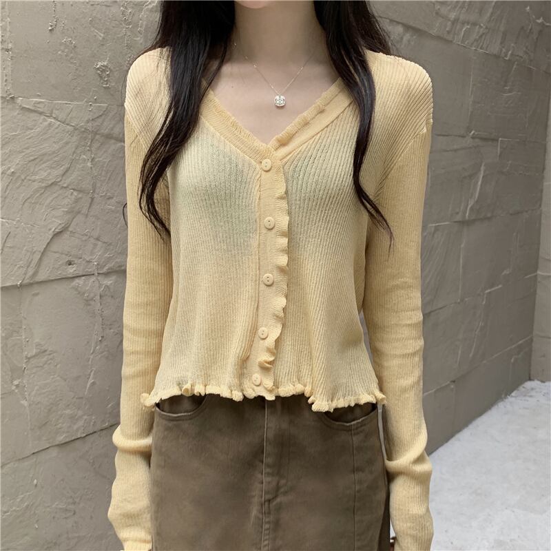 ニットカーディガンサマー薄手ジャケット ショートトップス ロング 夏物 シルク s576118309013703