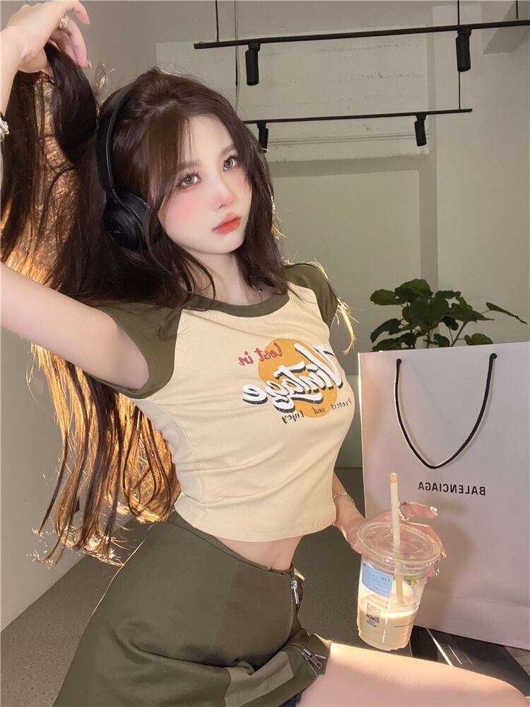 スリムクロップトップ トップス サマー薄手Tシャツ 大人ガーリー スウィート キュート カジュアル 夏物 s57619199190616
