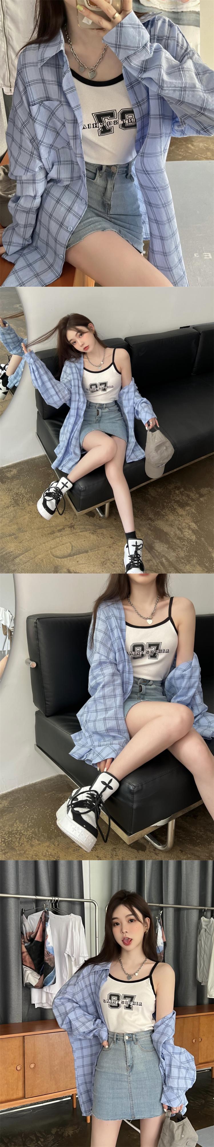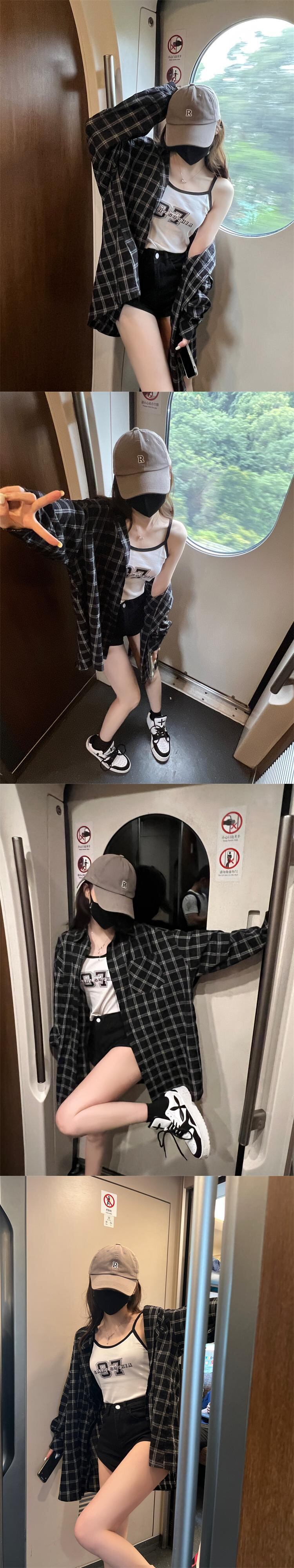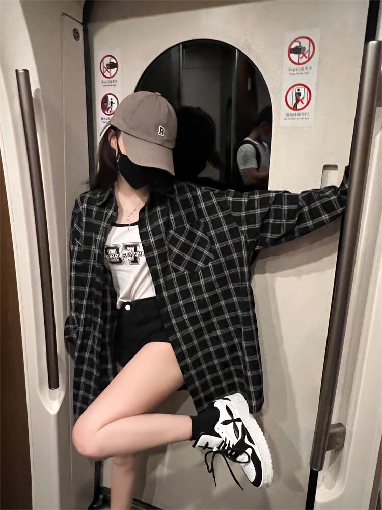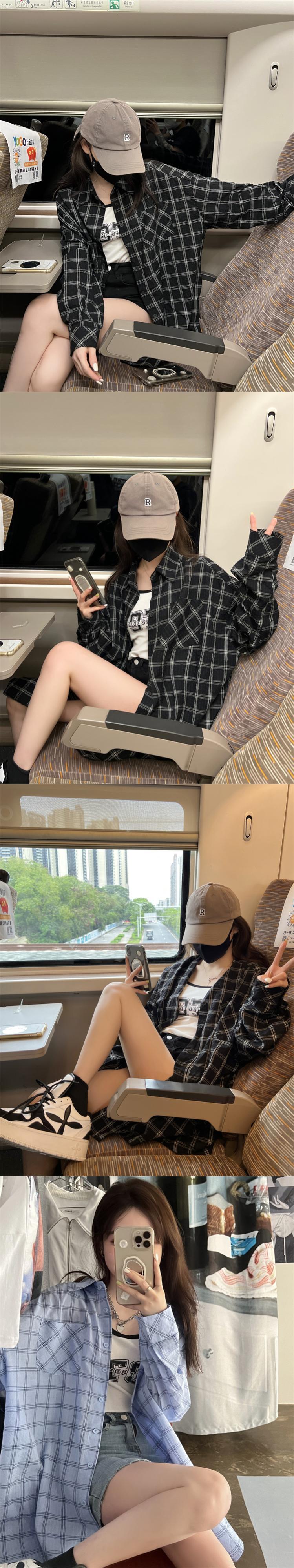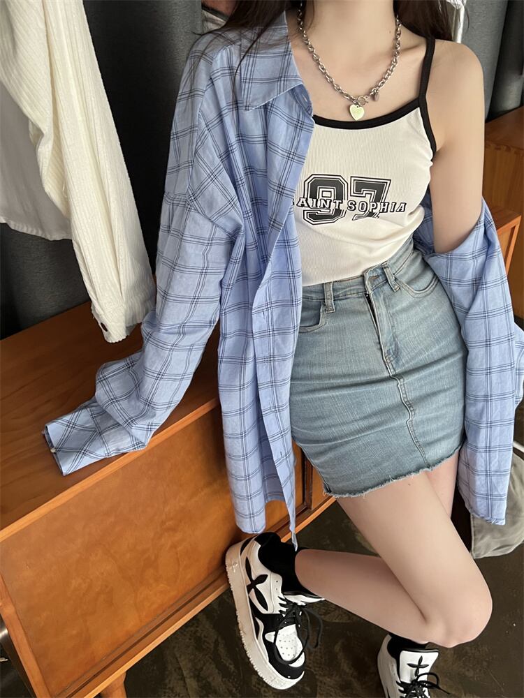 格子柄シャツ ジャケット サマー薄手スタンダードトップス レトロ 夏物 s576165592556624