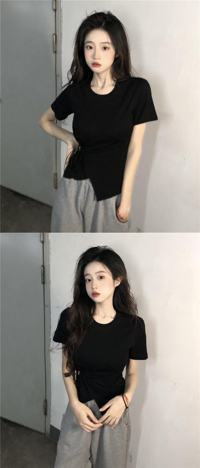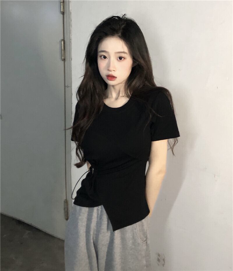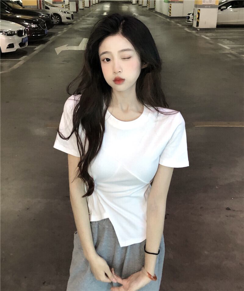 ホワイト半袖スリーブTシャツ サマーギャザートップス ショート ハーフスリーブ 大人ガーリー スウィート キュート カジュアル 夏物 ピュア s576134757624776