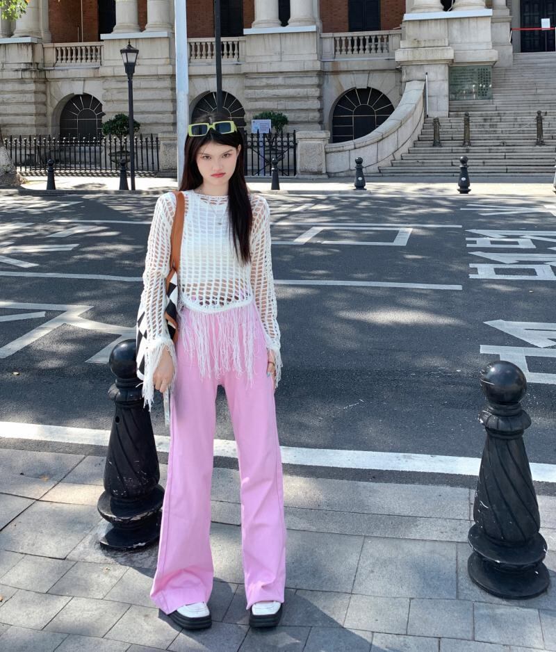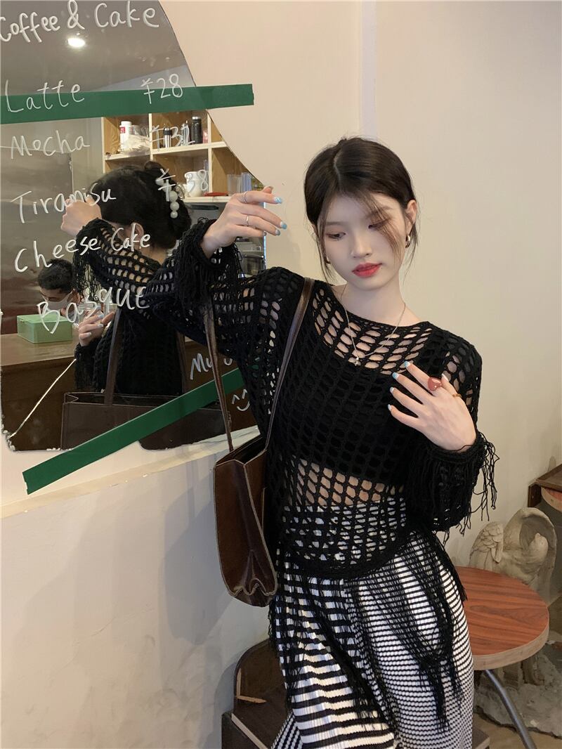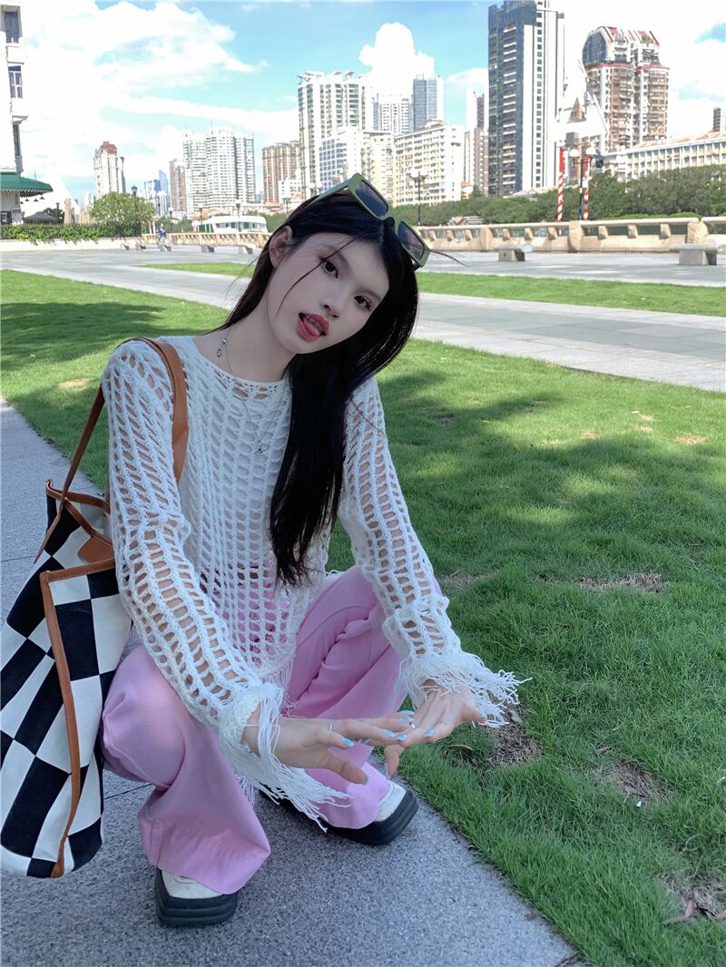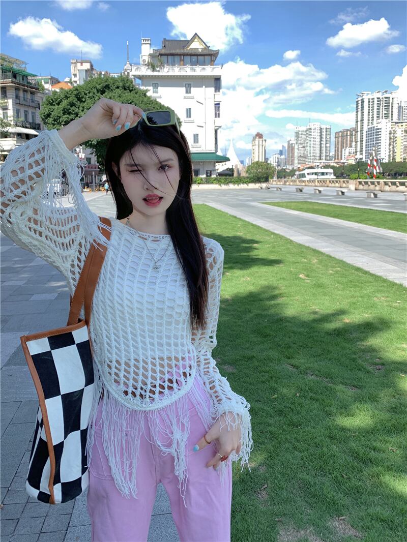 ブラウス サマー薄手レッドニットトップス 夏物 s576184789049298
