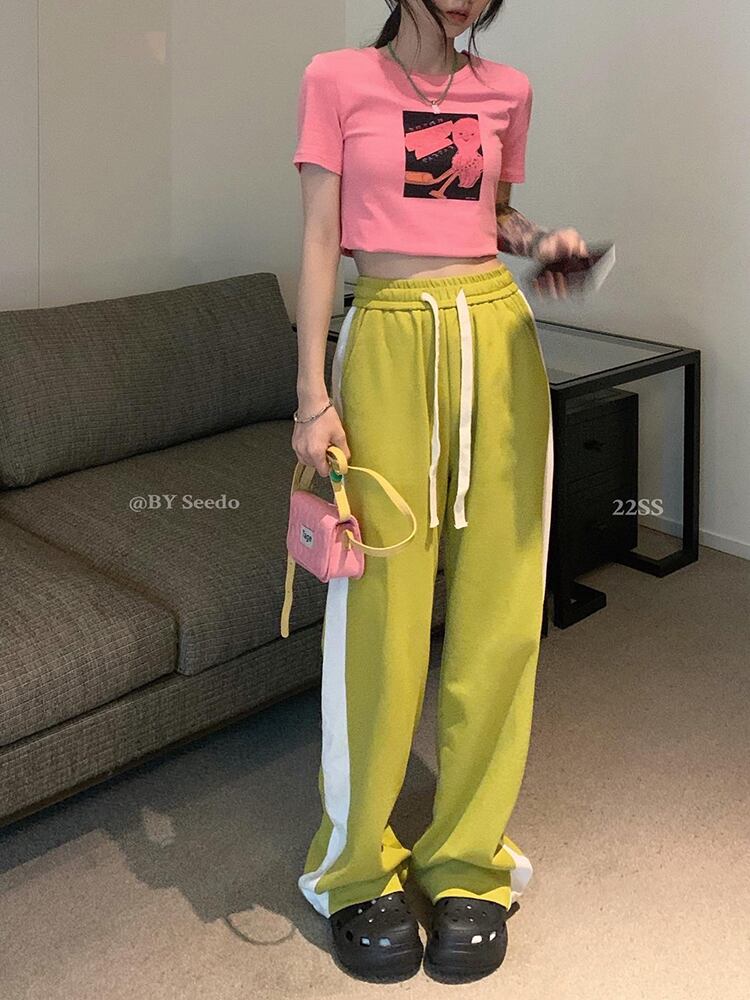 ブラックパンツ サマー薄手ハイウェストスリムルーズカジュアル 夏物 s576187482511659