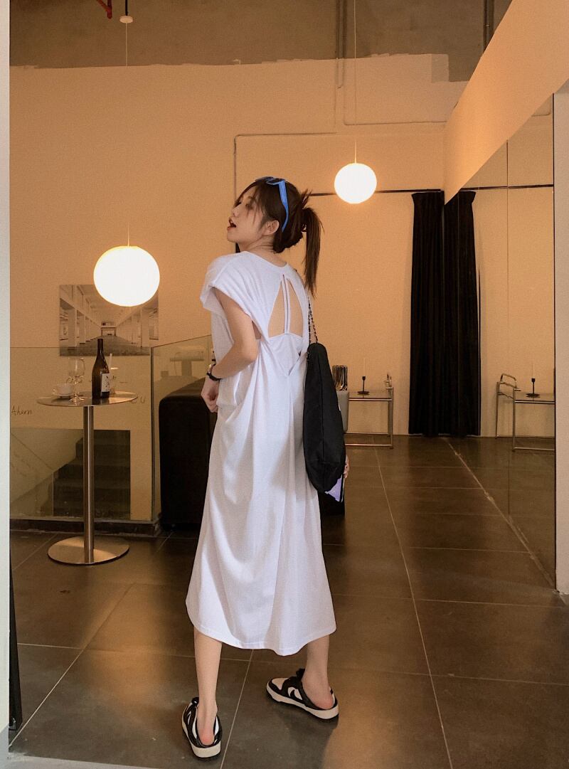 ホワイトTシャツ ドレス サマールーズカジュアルバックレススカート 夏物 s576140450902676