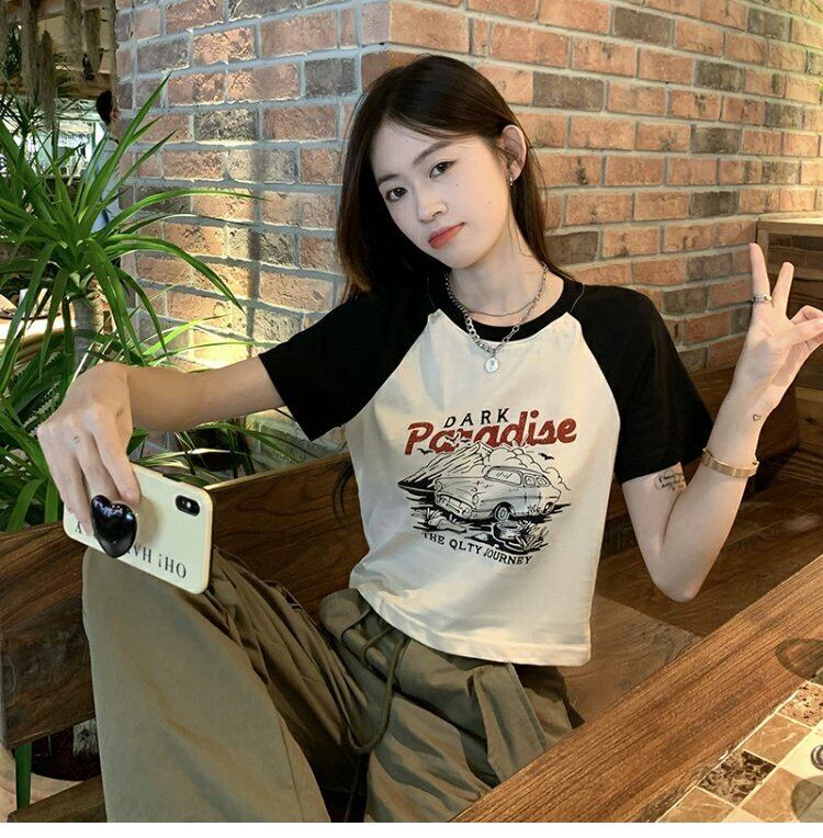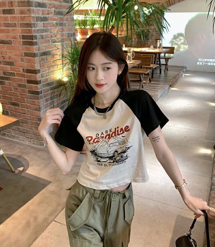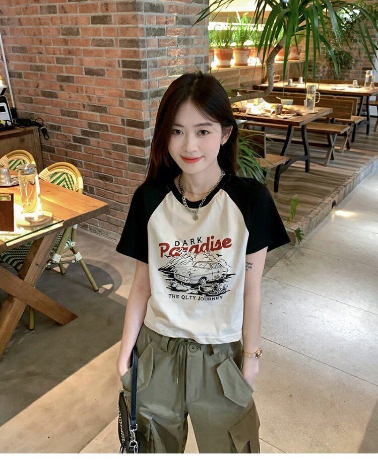 ショートTシャツ サマースリムフィット薄手トップス 大人ガーリー スウィート キュート カジュアル 夏物 s576185887575348