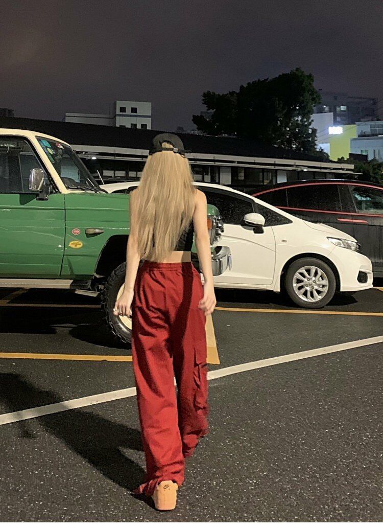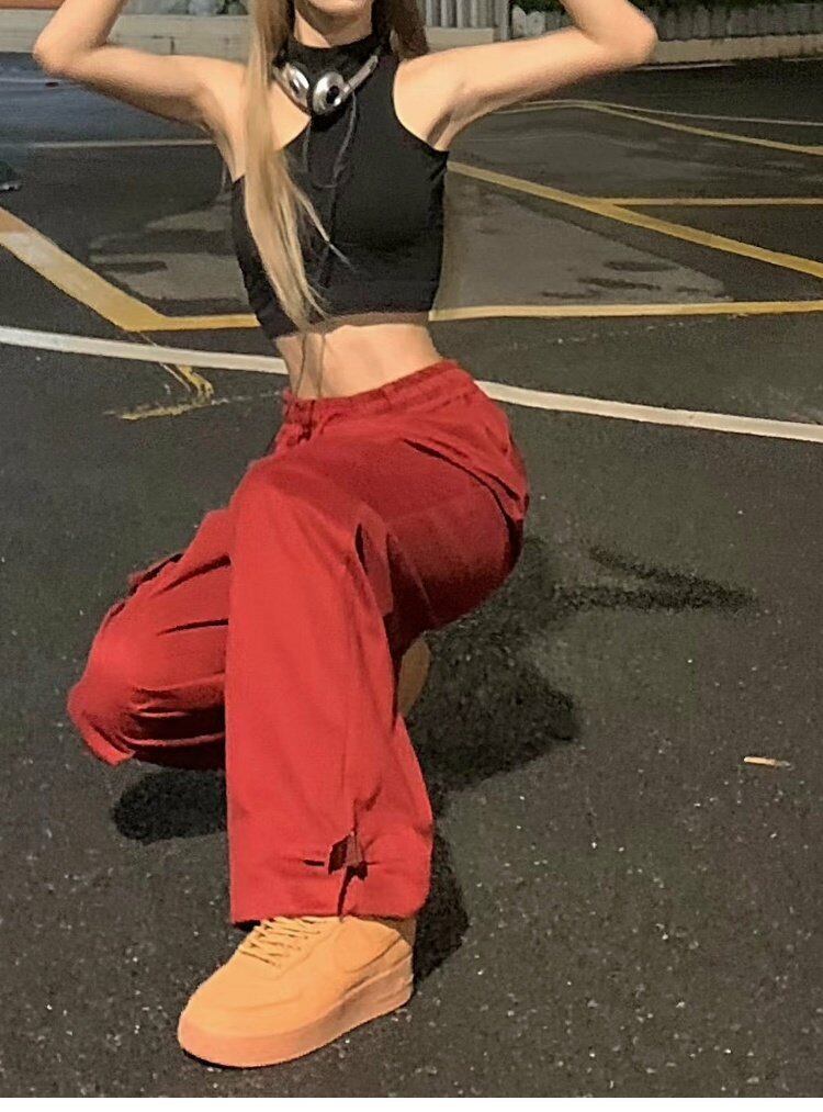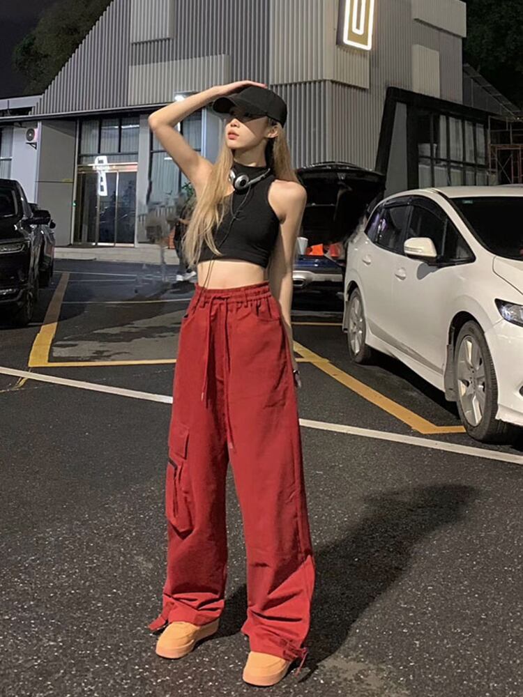 レッドオーバーオール サマーハイウェストウェストパンツ ルーズカジュアルワイドレッグ 夏物 ワイドパンツ s576190481175521