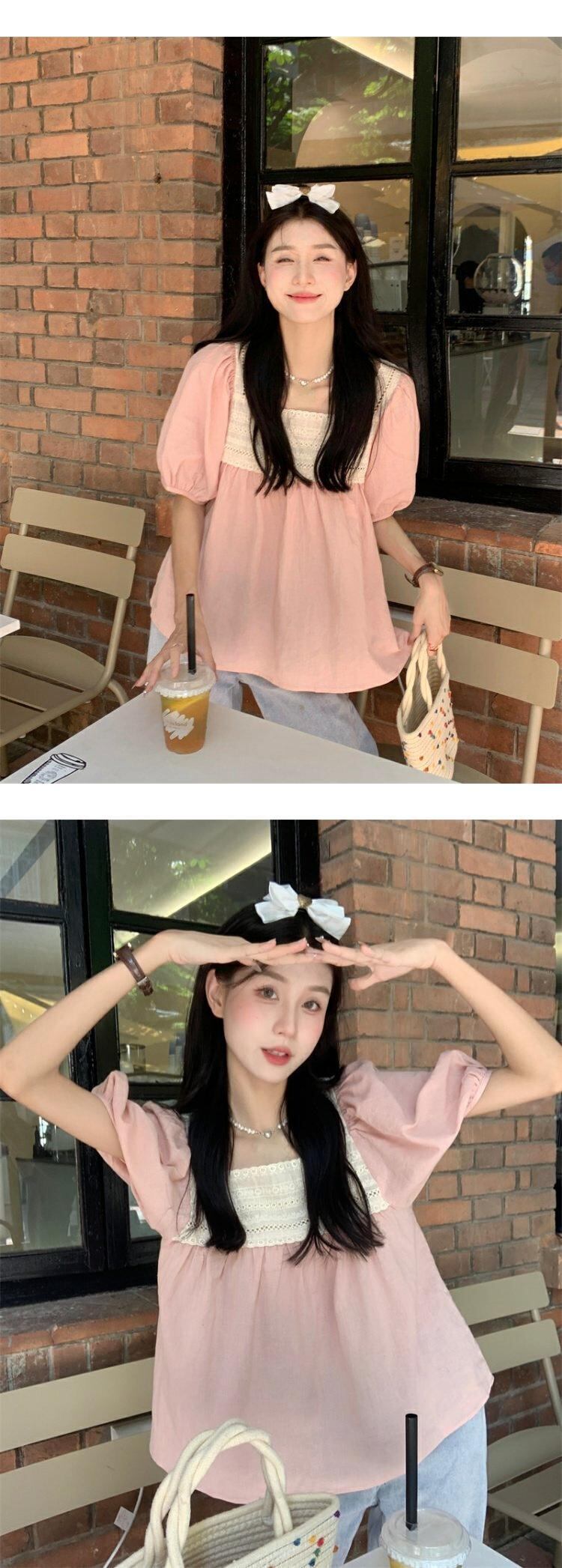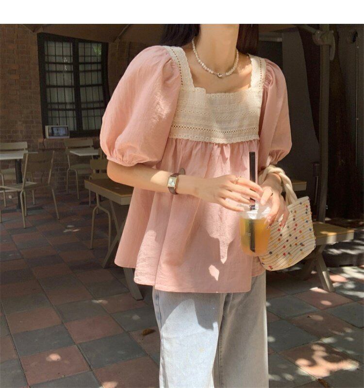 スリーブトップス サマースタイルシャツ 大人ガーリー スウィート キュート カジュアル 夏物 スクウェア s576194343795909
