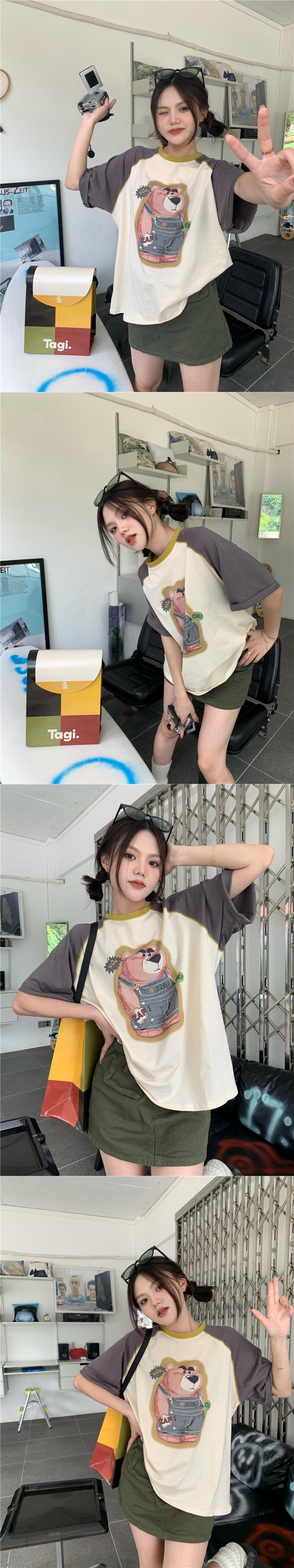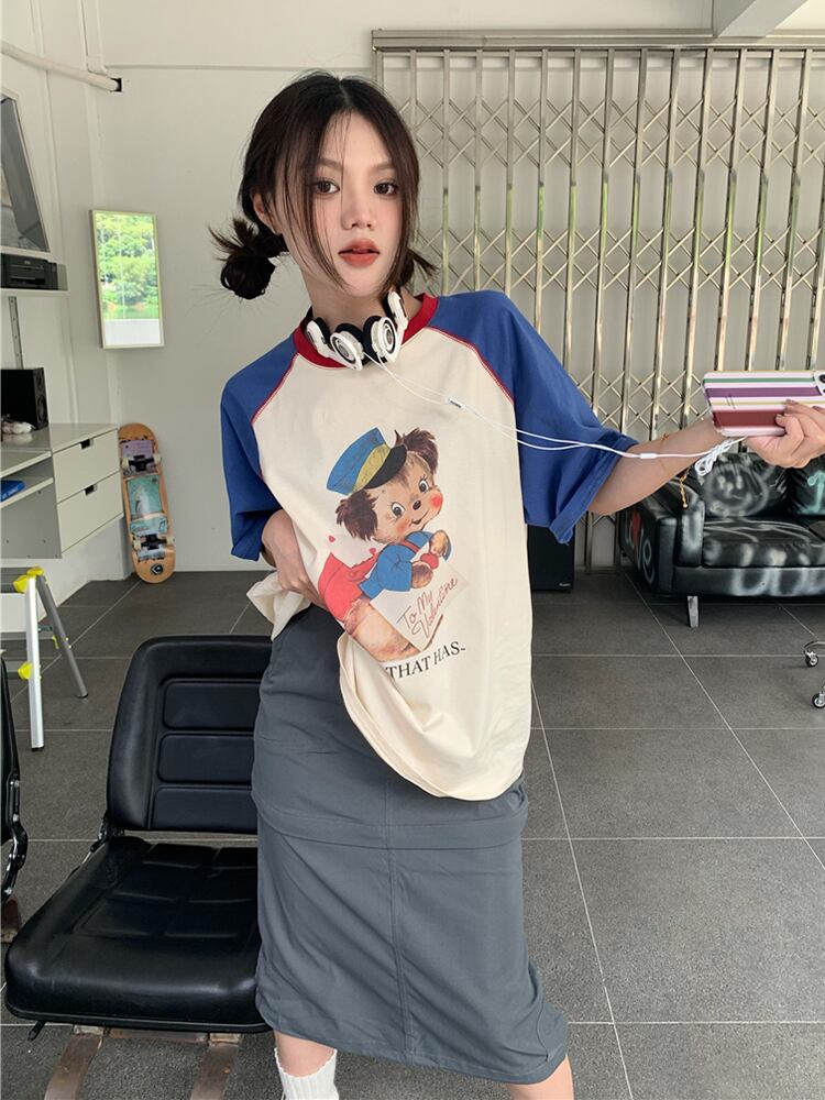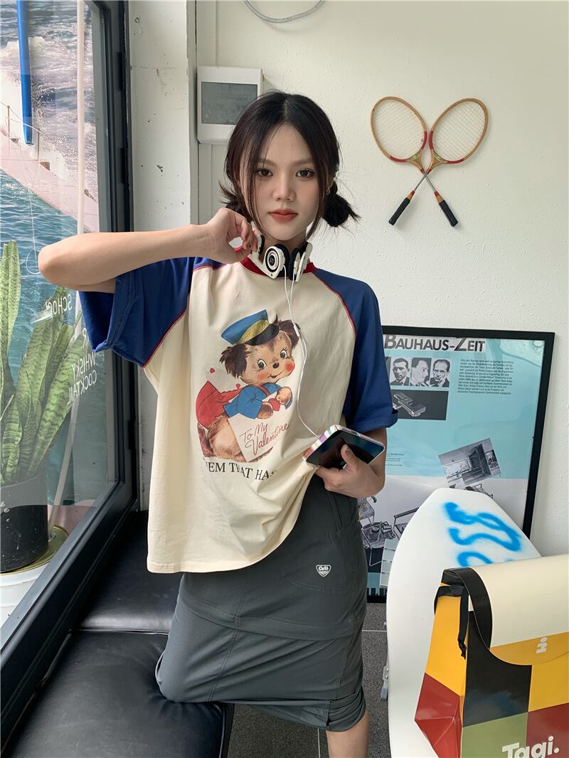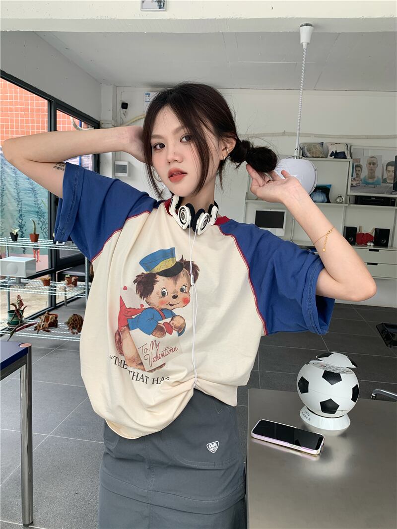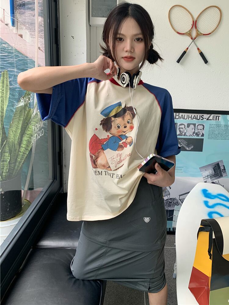 Tシャツ サマーレッドルーズトップス 夏物 s576126034273526