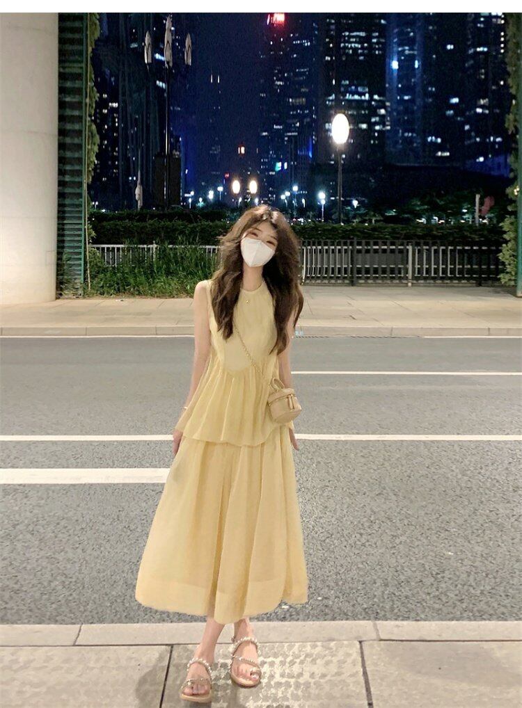 ノースリーブドレス サマーロングスカート 大人ガーリー スウィート キュート カジュアル 夏物 s576171958357393