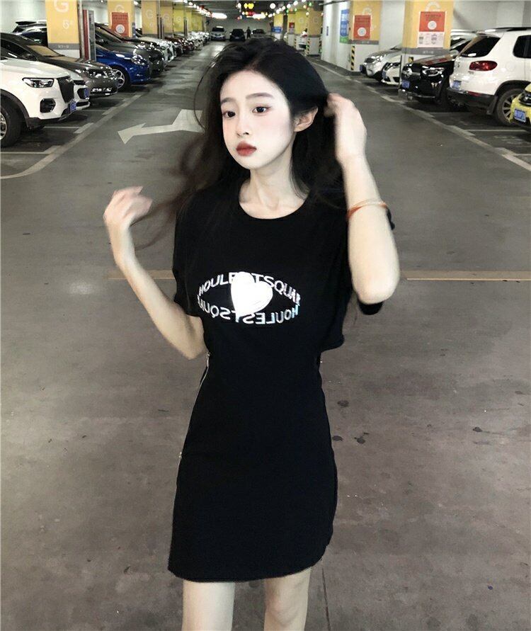 ブラックTシャツ ドレス サマースリムウェストスカート 夏物 s576182832958290