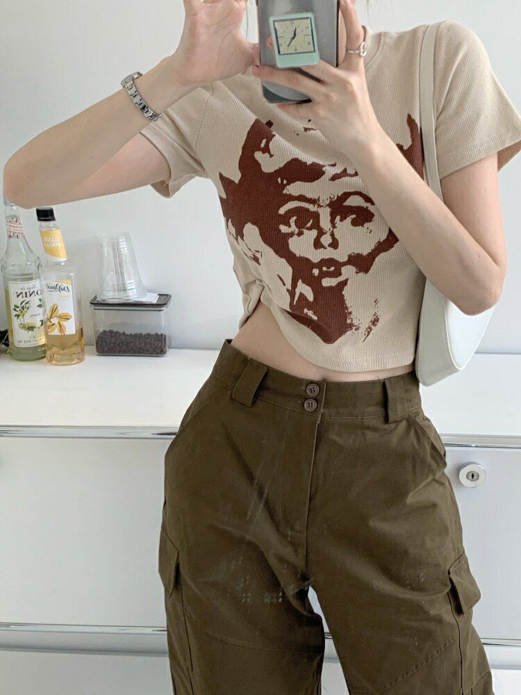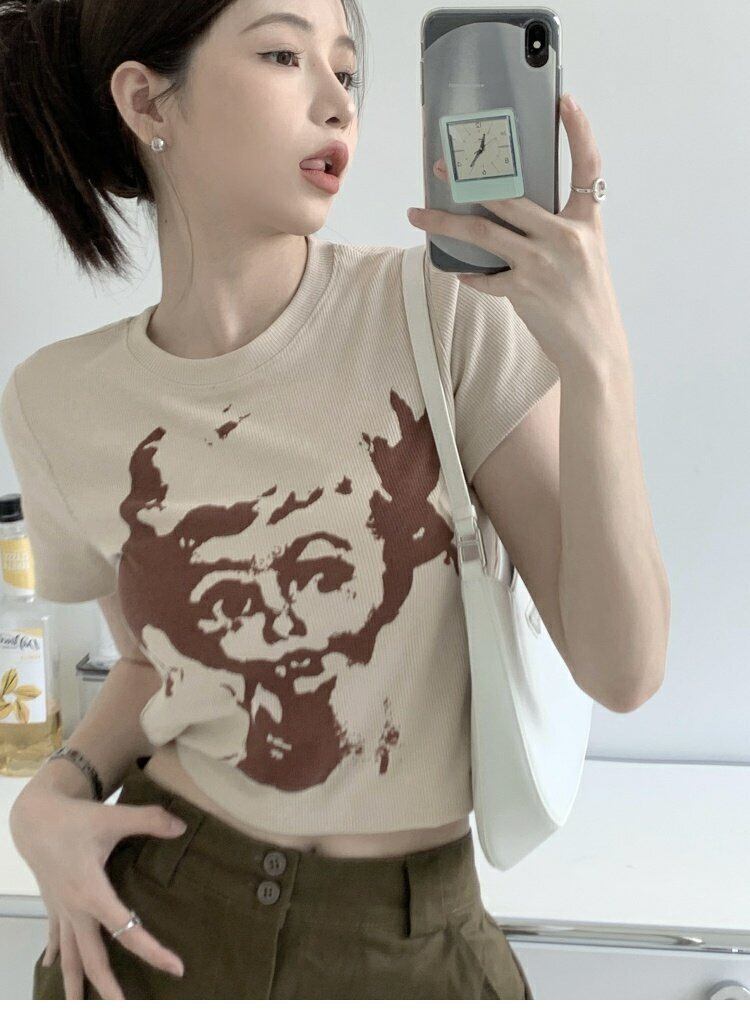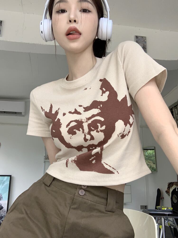 スタンダードショートTシャツ サマースリムトップス レトロ 大人ガーリー スウィート キュート カジュアル 夏物 s576133277239514