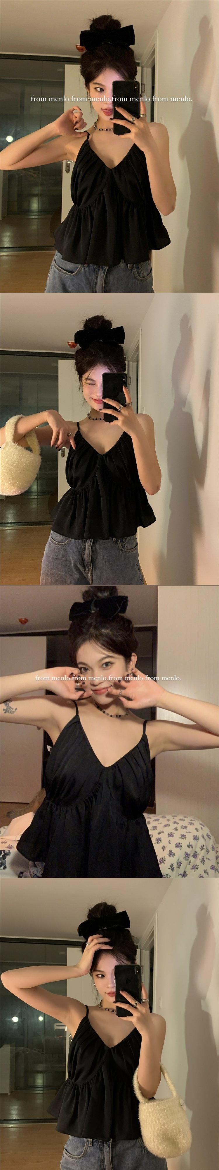 ブラックサマーレッドノースリーブショートトップス 大人ガーリー スウィート キュート カジュアル 夏物 s576147586351391