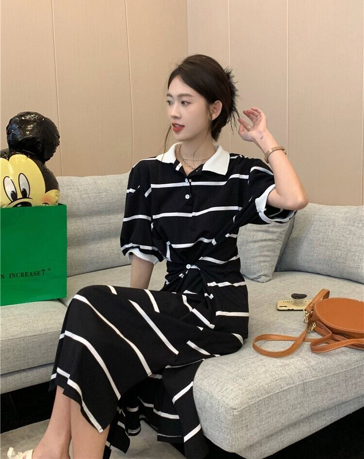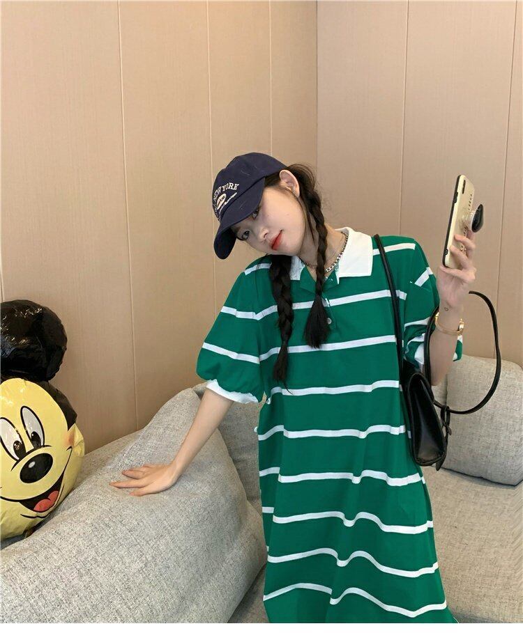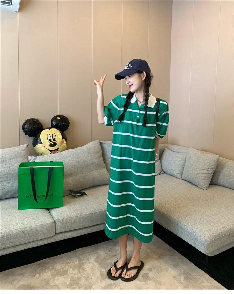 カラーストライプドレス サマースタンダードルーズカジュアルロングスカート レトロ 夏物 s576146309850361
