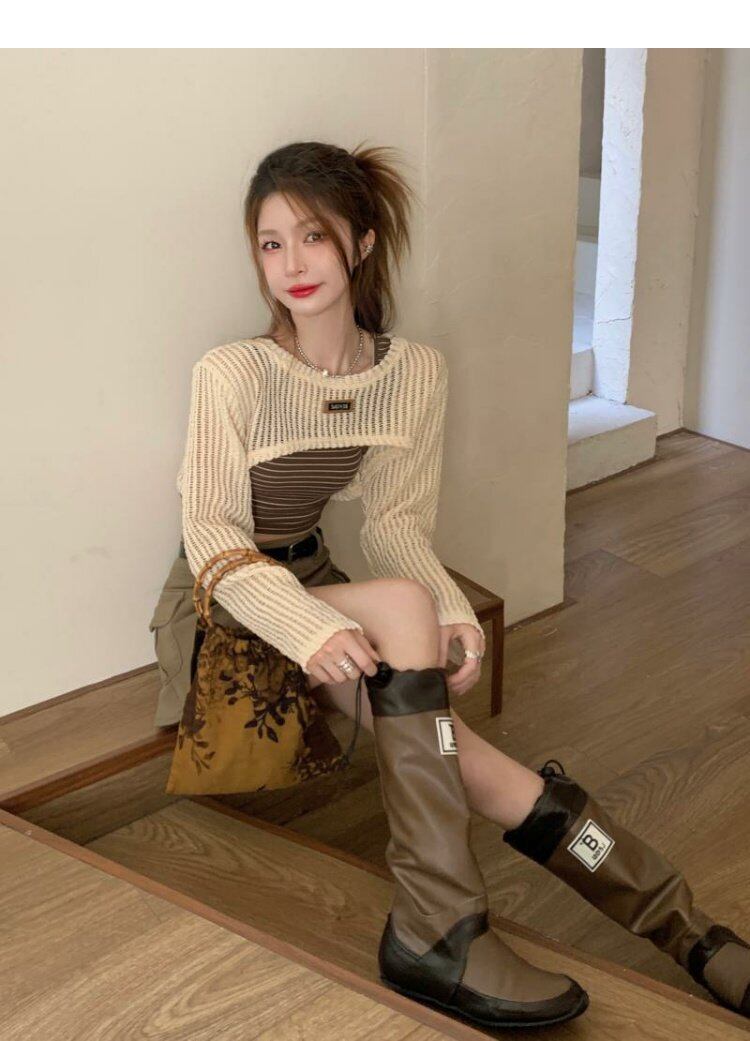 長袖スリーブニット サマー薄手スタイルショートトップス セット ロング 大人ガーリー スウィート キュート カジュアル 夏物 s576122947163318