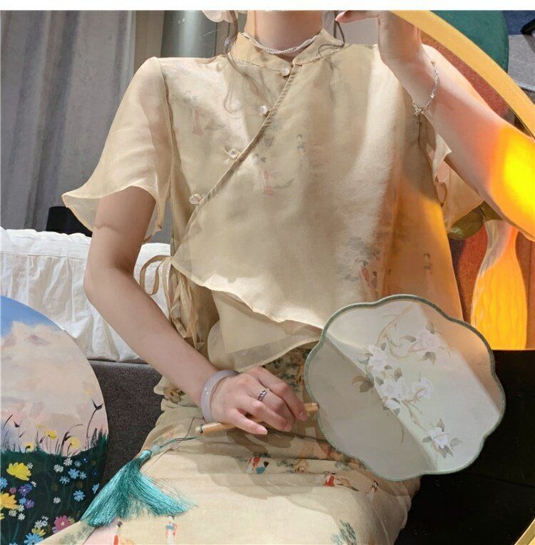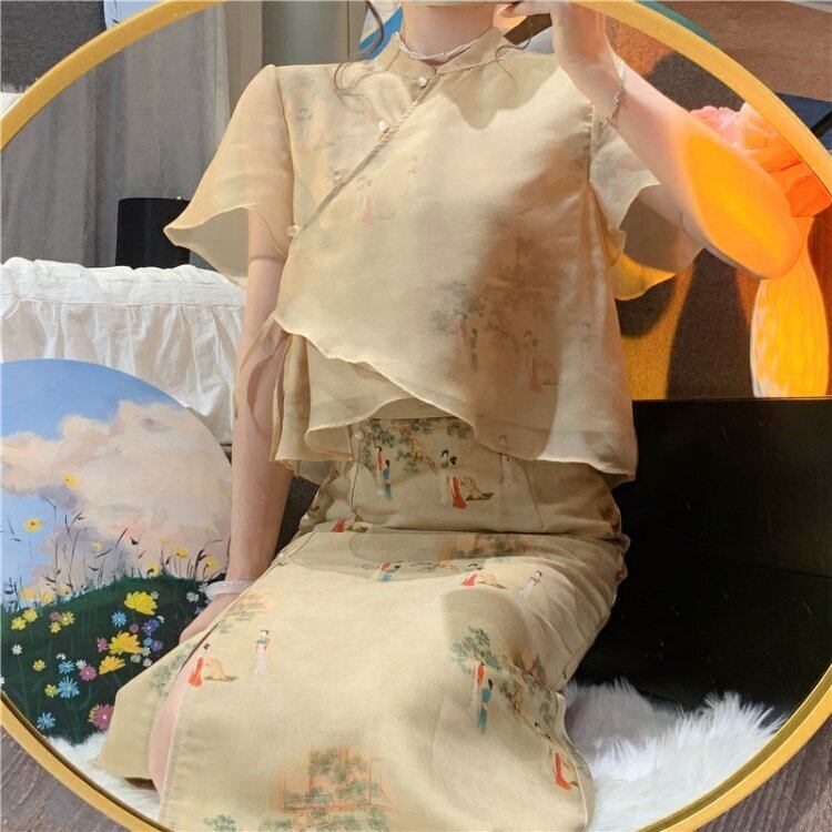 スタイルシャツ サマースタンダード自然派トップス スカート セット レトロ 夏物 s57619417882886