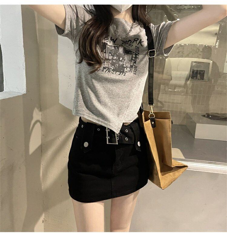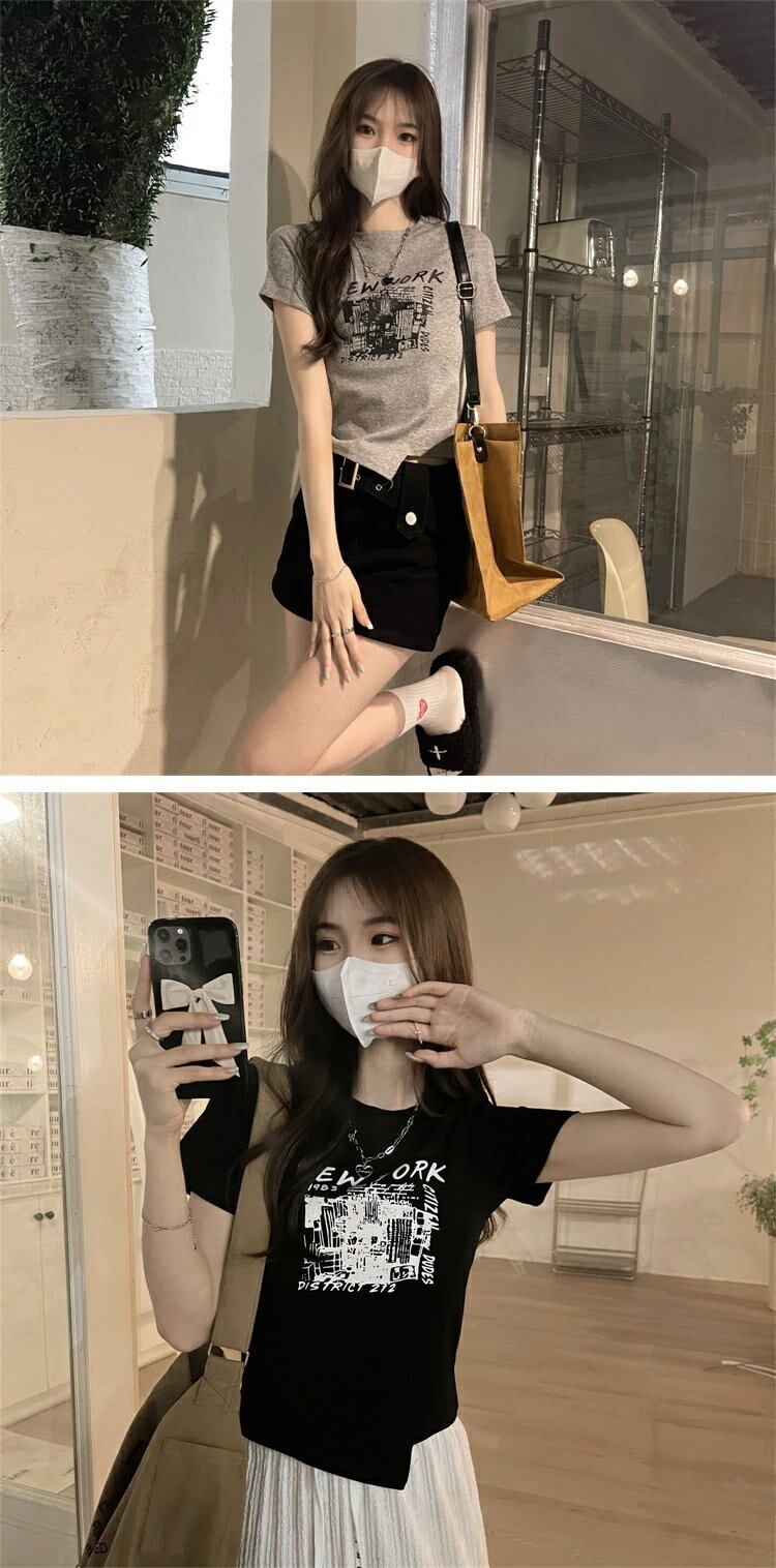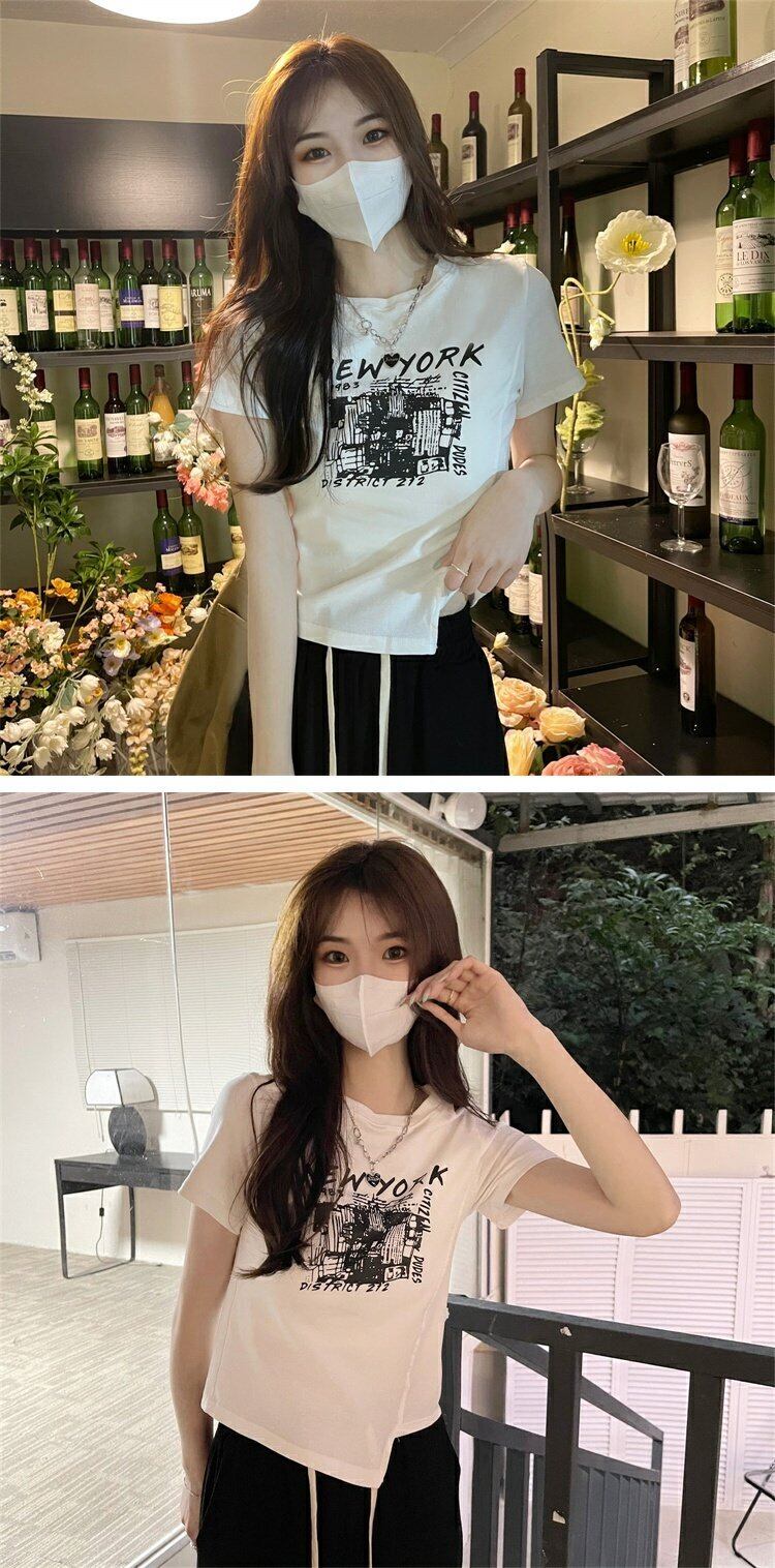 ホワイトショートTシャツ サマースリムトップス 大人ガーリー スウィート キュート カジュアル 夏物 s576174534888697