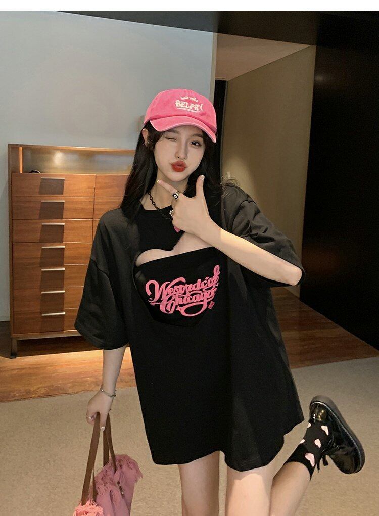 Tシャツ サマールーズブラックトップス レッド 夏物 s576134261933247