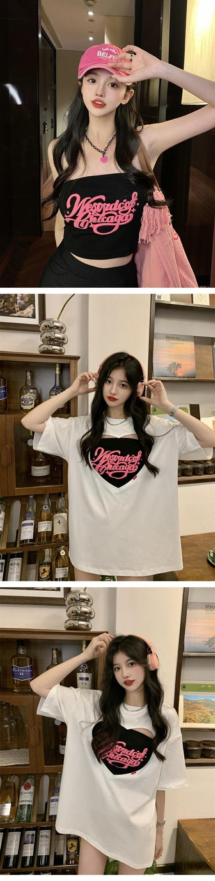 色:ブラックT-shirt+Tubeトップ,ホワイトT-shirt+Tubeトップ