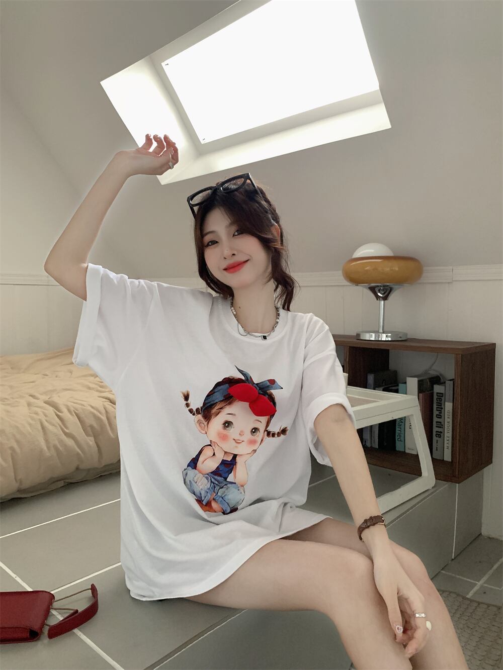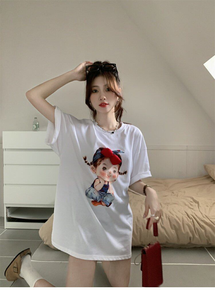 ホワイトTシャツ サマースタイルルーズトップス 大人ガーリー スウィート キュート カジュアル 夏物 s576174633286503