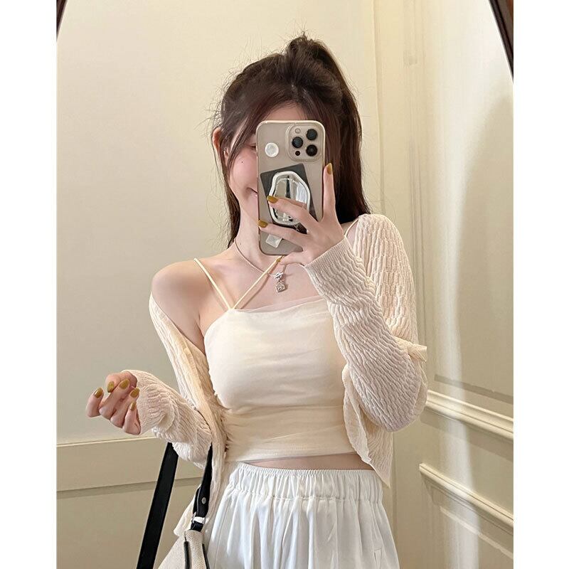 ニットカーディガンサマー薄手ジャケット スカート ショートトップス ロング 夏物 s576117521532490