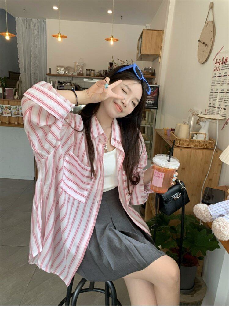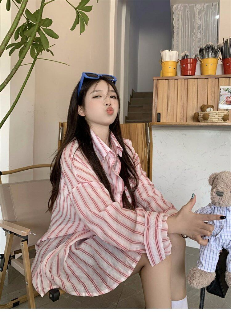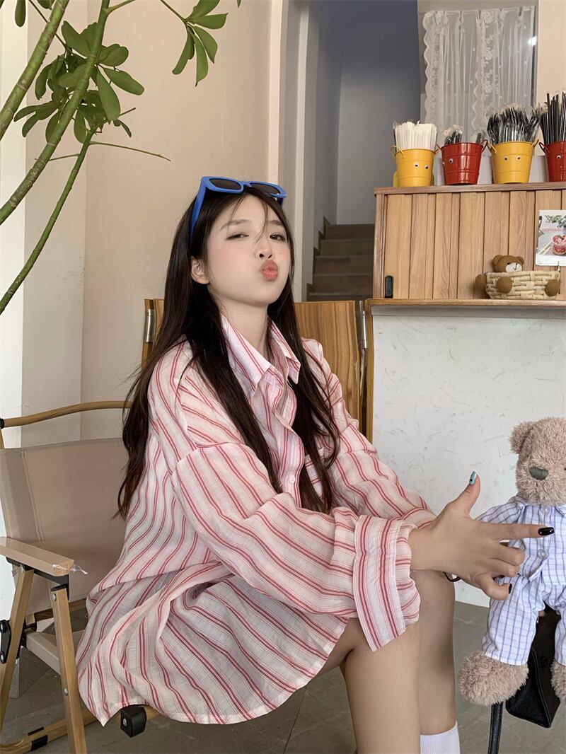ストライプシャツ ジャケット サマー薄手スタンダードスタイルルーズカジュアルトップス レトロ 夏物 s57619386061100